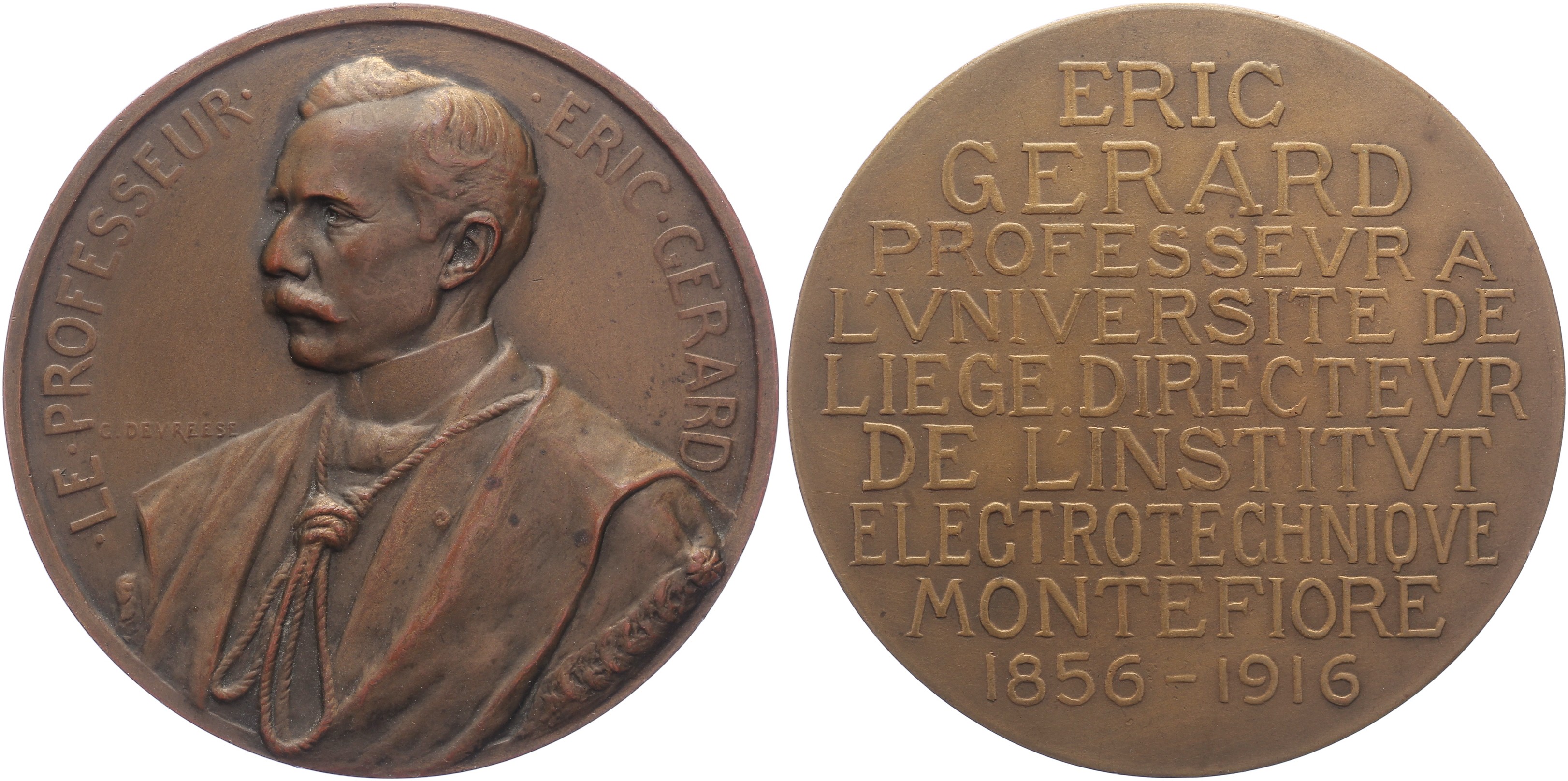 1924 Ter ere van Eric Gérard, electrotechnicus. Bust in toga naar links. / Negenregelig opschrift. Æ 75. Willenz 258; PVD 276. Zeer fraai.