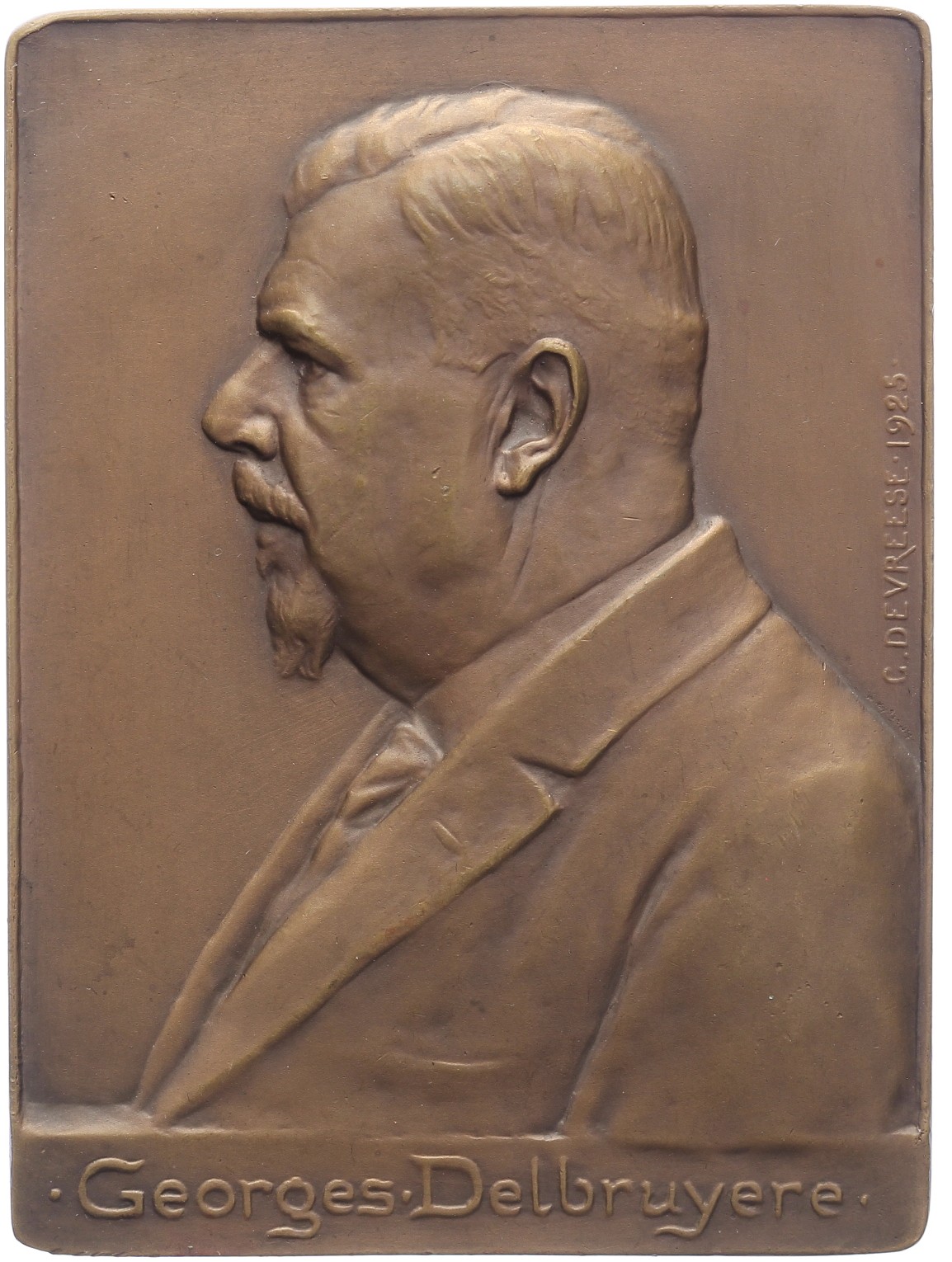 1925 Ter ere van Georges Delbruyère, bierbrouwer. Buste naar links. / Blanco. Æ 71,4 x 52,9. Willenz 268; PVD 288. Prachtig.