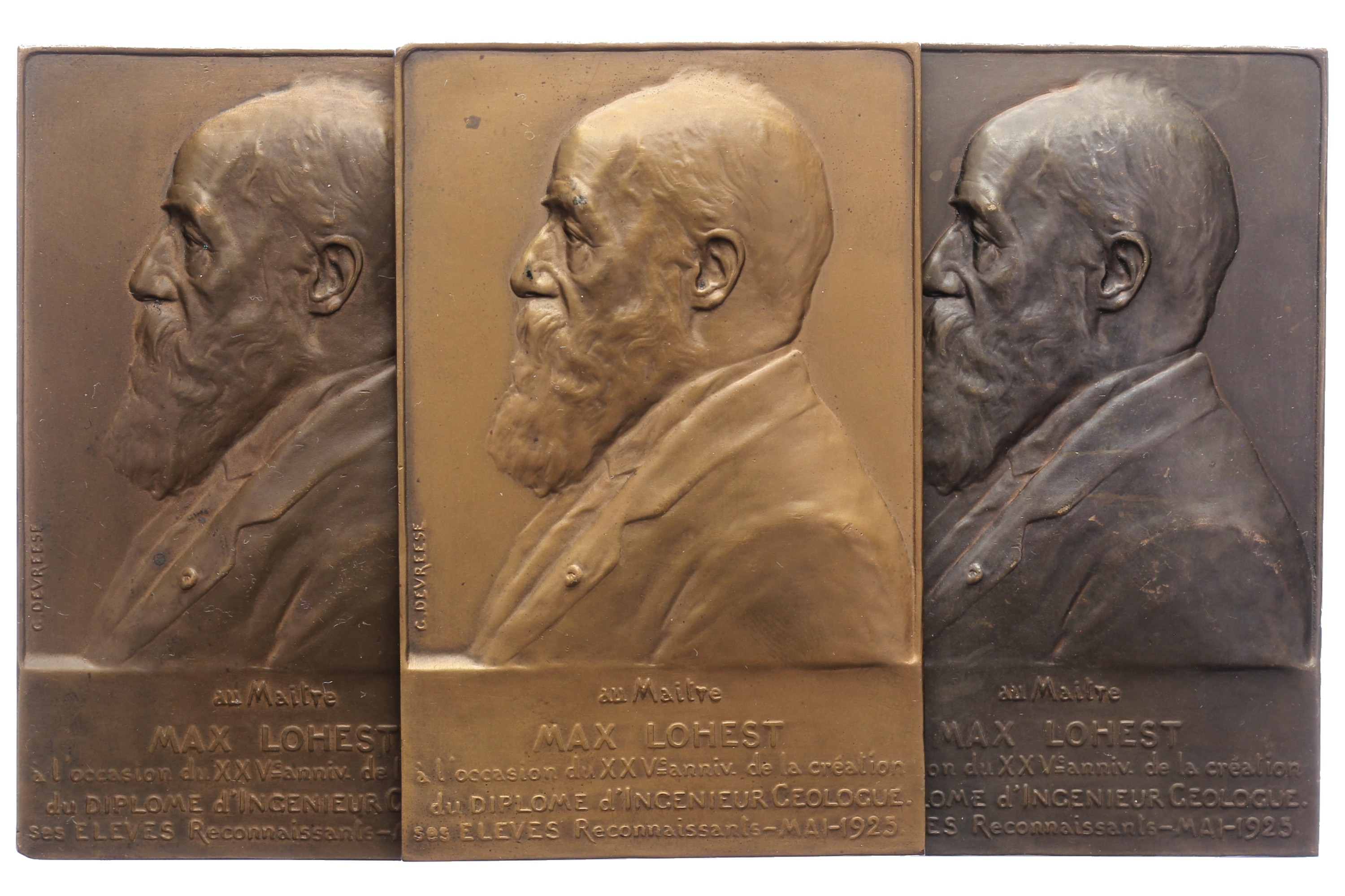 Lot (3) 1925 Ter ere van Max Lohest, mijningenieur. Buste naar links. / Blanco. Æ 75,9 x 48,6. Willenz 288; PVD 307. Zeer fraai.