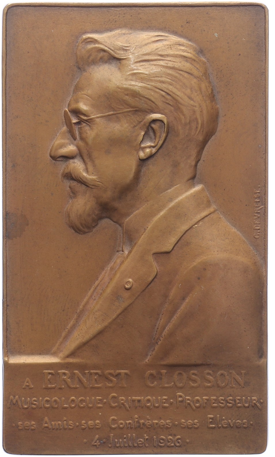 1926 Ter ere van Ernest Closson, musicus. Buste naar links. / Blanco. Æ 75,6 x 44,8. Willenz 294; PVD 313. Vlekje. Prachtig.