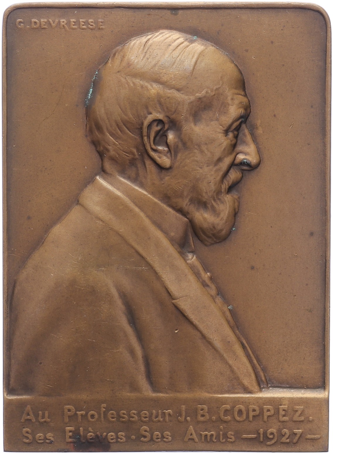 1927 Ter ere van Jean-Baptiste Coppez, hoogleraar oogheelkunde. Buste naar rechts. / Blanco. Æ 74 x 54. Willenz 299; PVD 319. Vlekjes. Zeer fraai.