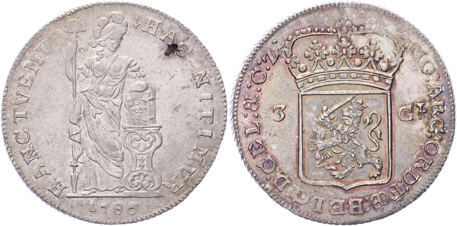 3 Gulden 1786. Delm. 1145; CNM 2.17.148; HPM 86. Gietgalletje. Ruim prachtig.