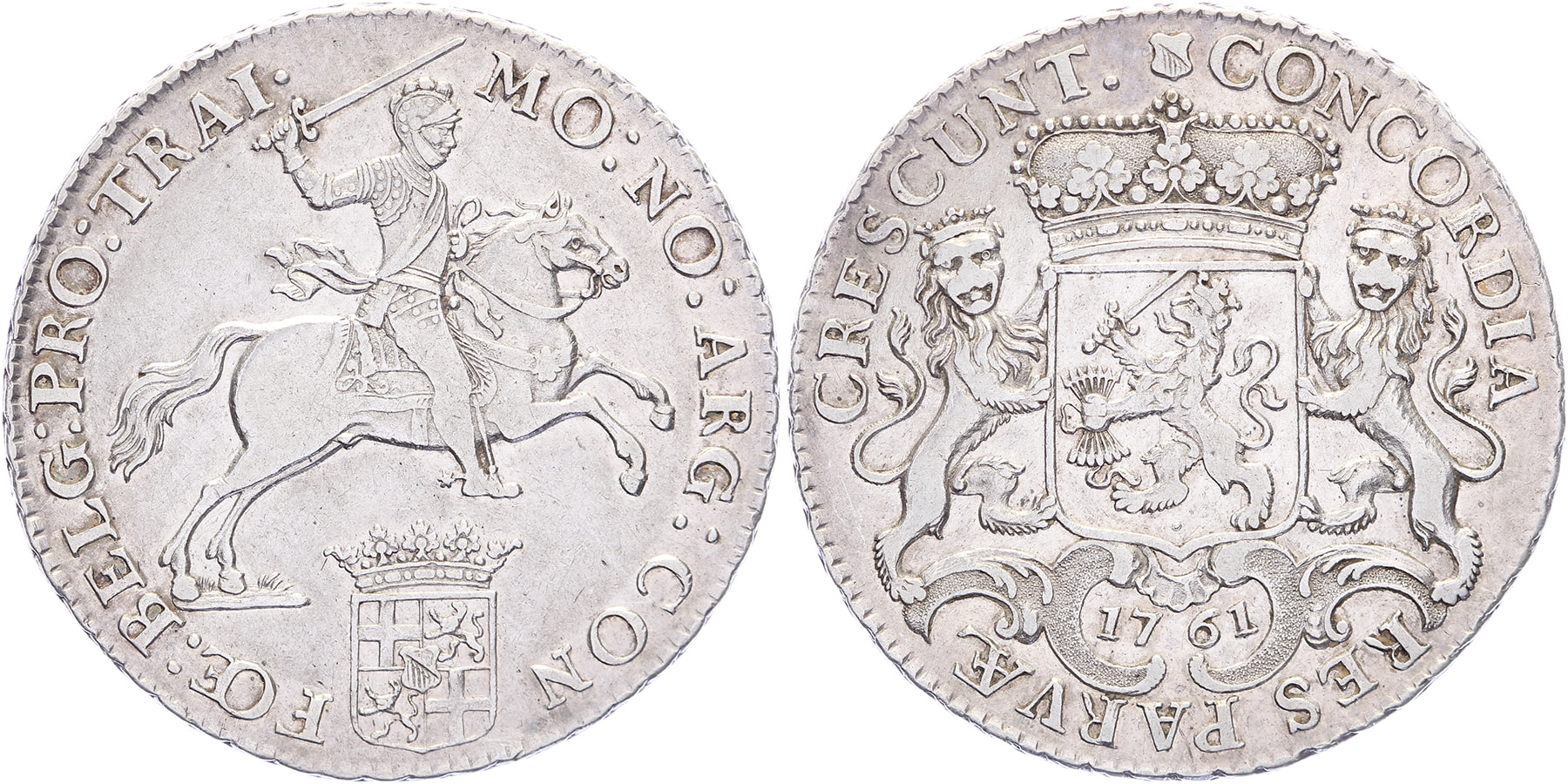 ½ Rijder of ½ dukaton 1761. Bloemrand. Delm. 1055; CNM 2.43.106; HPM 60. Zeer fraai.