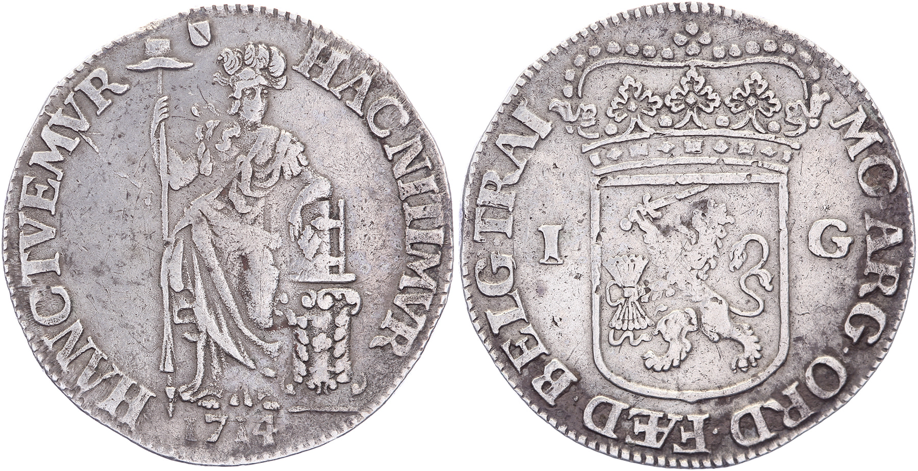 1 Gulden 1714. Delm. 1182; CNM 2.43.119; HPM 72. Zeer fraai.
