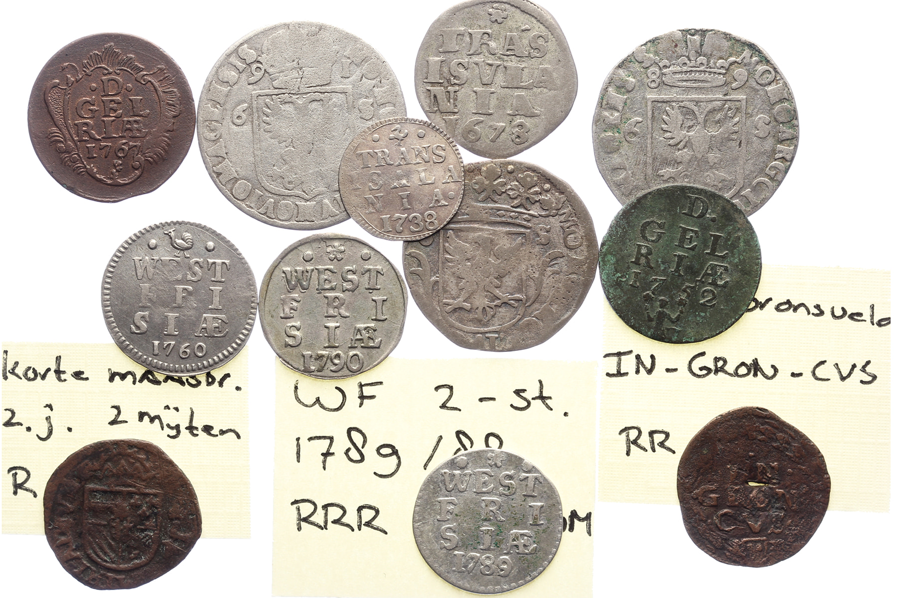 Doosje (12) diverse provinciale munten. Van duit tot rijderschelling. Matige kwaliteiten.