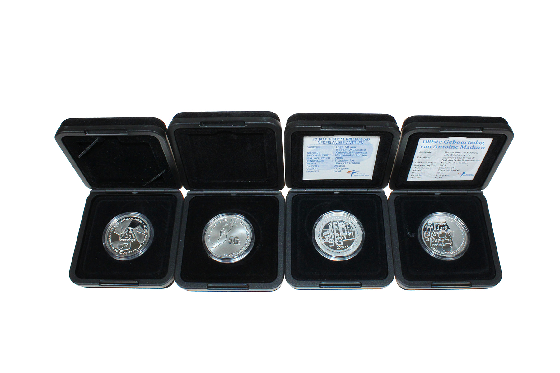 Lot (4) 5 Gulden 2004 - Koninkrijksstatuut; 2005 - Jubileum; 2008 - Bisdom Willemstad; 2009 - Maduro. Proof in originele verpakking.