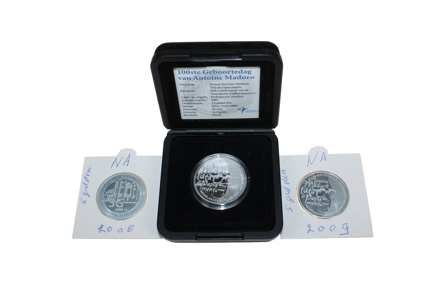 Lot (3) 5 Gulden 2008 - Bisdom Willemstad; 2009 - Maduro (2). Diverse kwaliteiten.