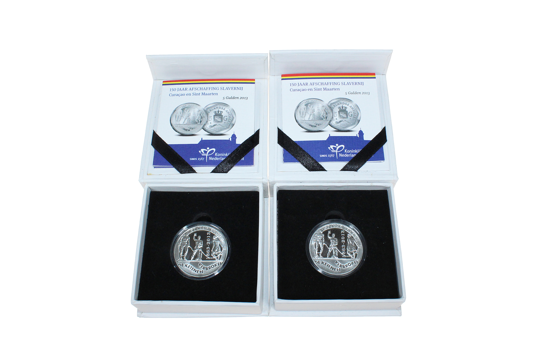 Lot (2) 5 Gulden 2013 - Afschaffing slavernij. Proof in originele verpakking.