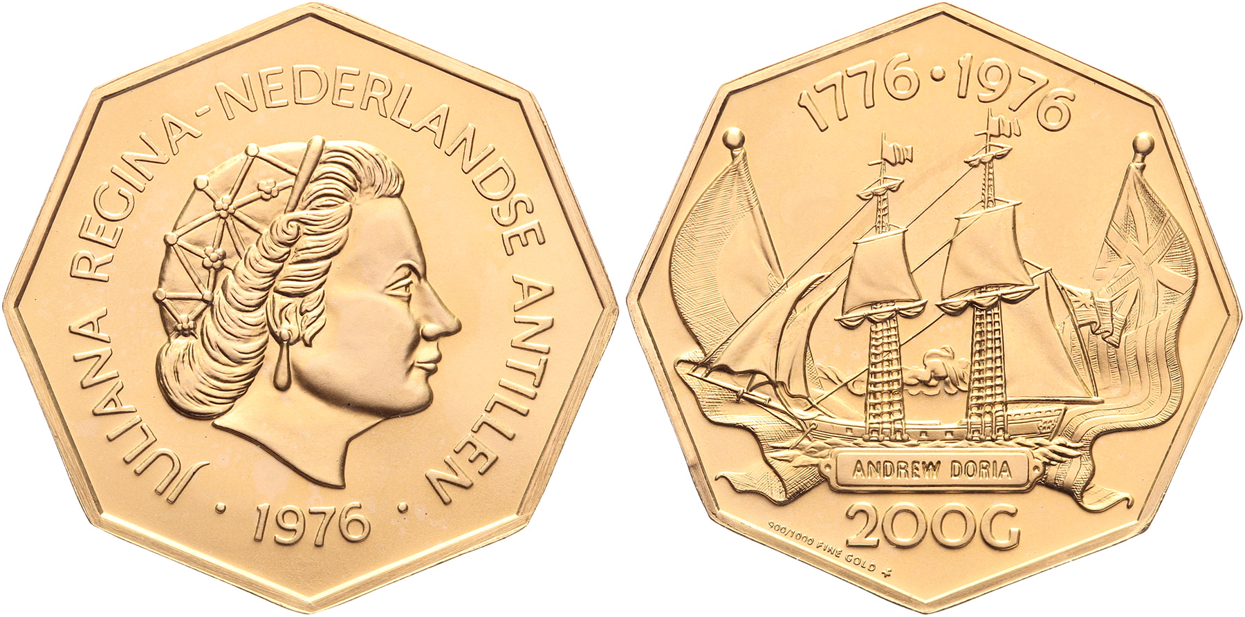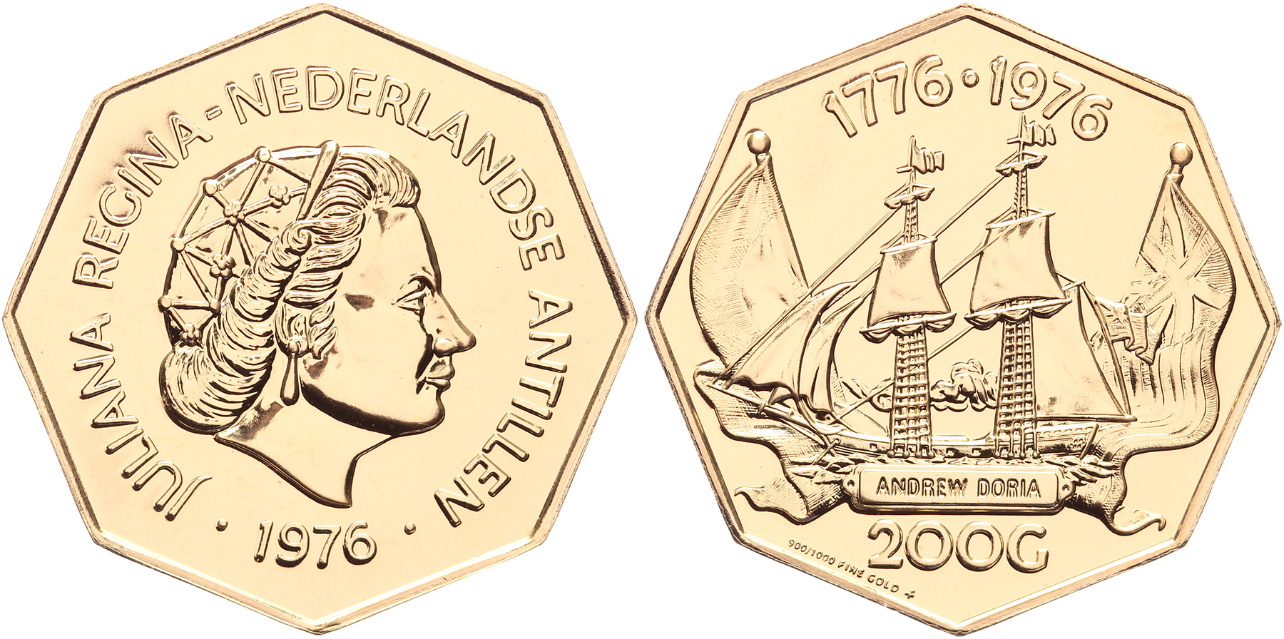 Lot (2) 200 Gulden 1976 - Andrew Doria. KM 16; Fr. 1. Vrijwel UNC / Proof.