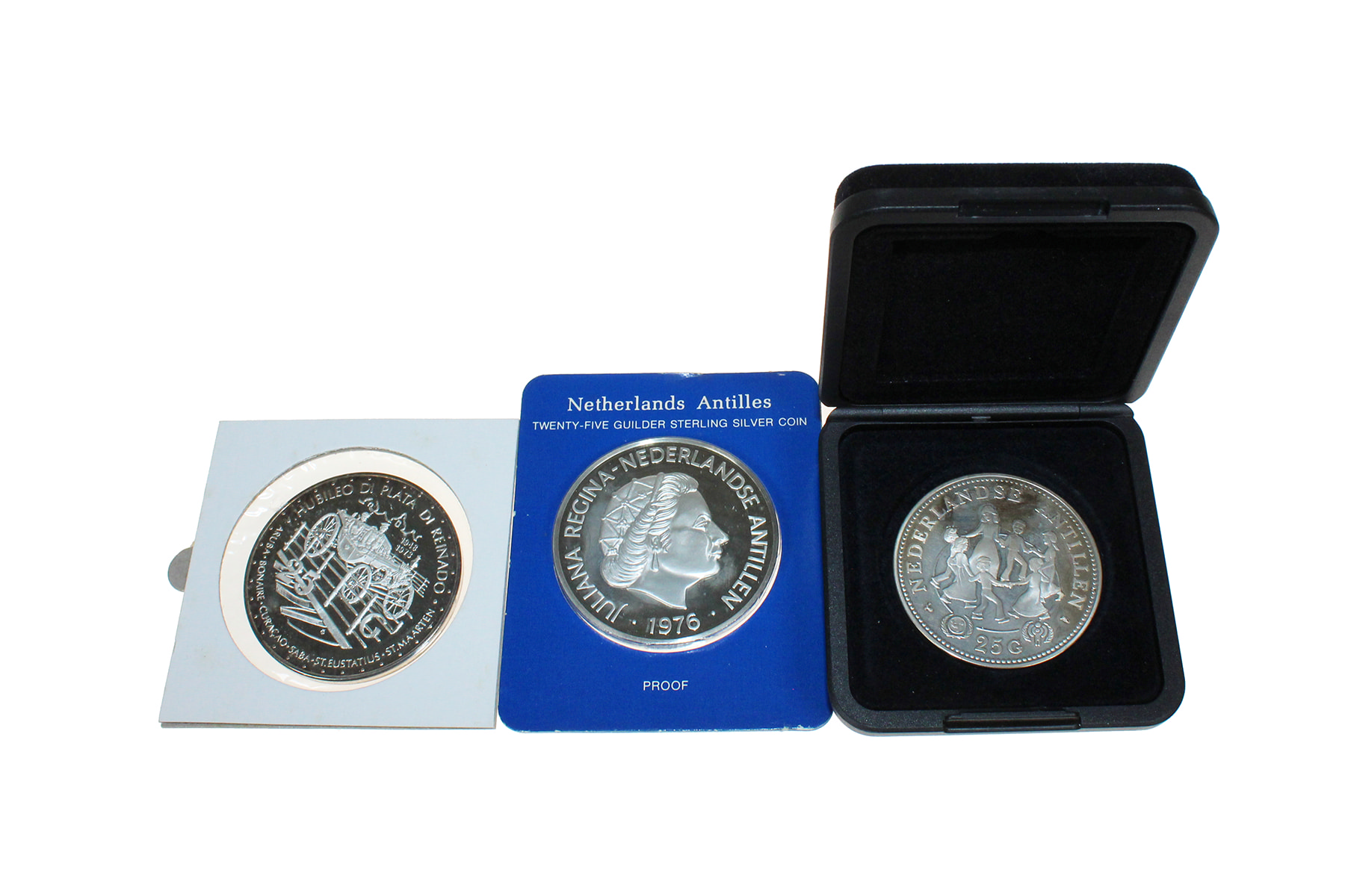 Lot (3) 25 Gulden 1973 - Postkoets; 1976 - Andrew Doria; 1979 - Spelende kinderen. Diverse kwaliteiten.