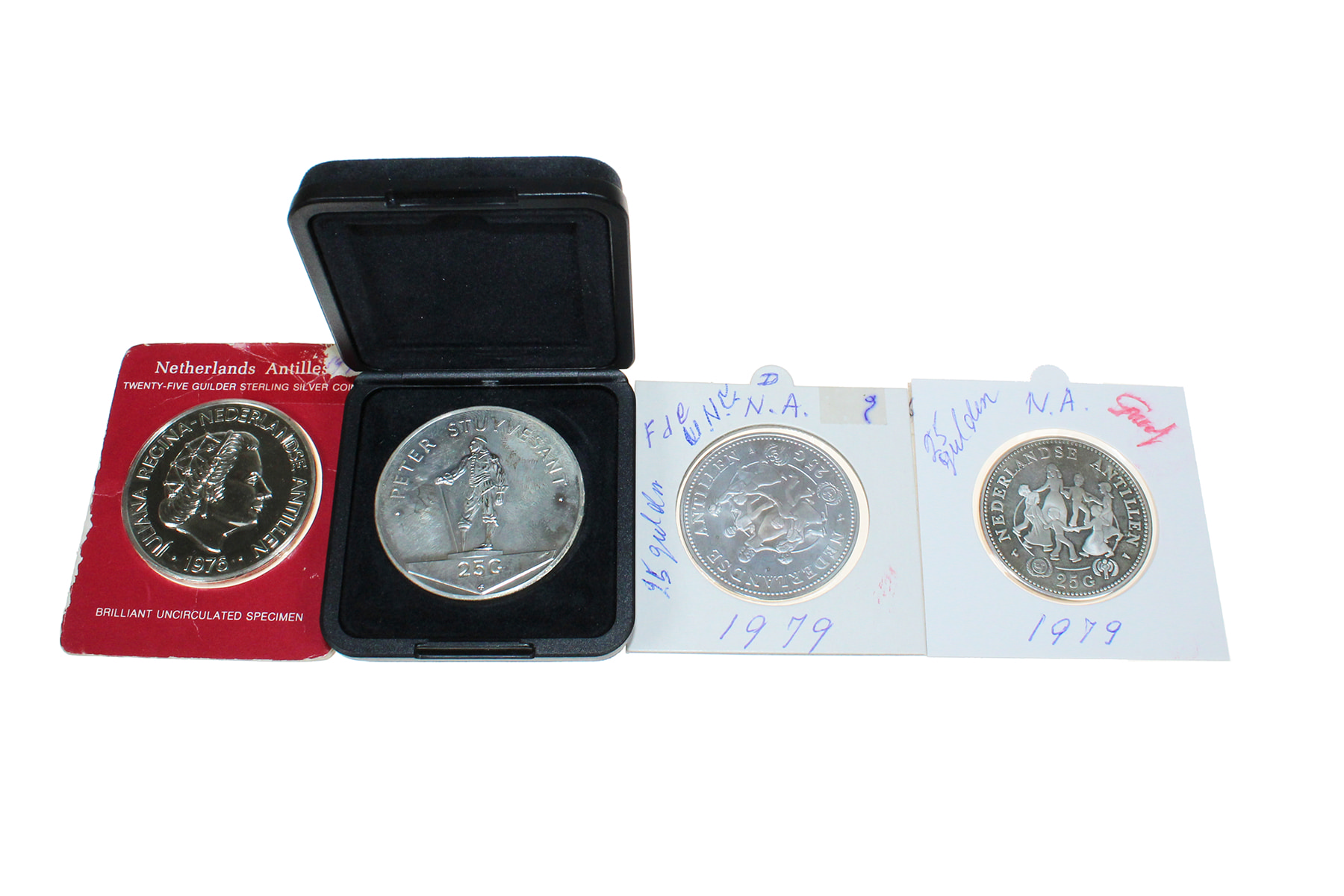 Lot (4) 25 Gulden 1973 - Postkoets; 1976 - Andrew Doria; 1979 - Spelende kinderen (2). Diverse kwaliteiten.