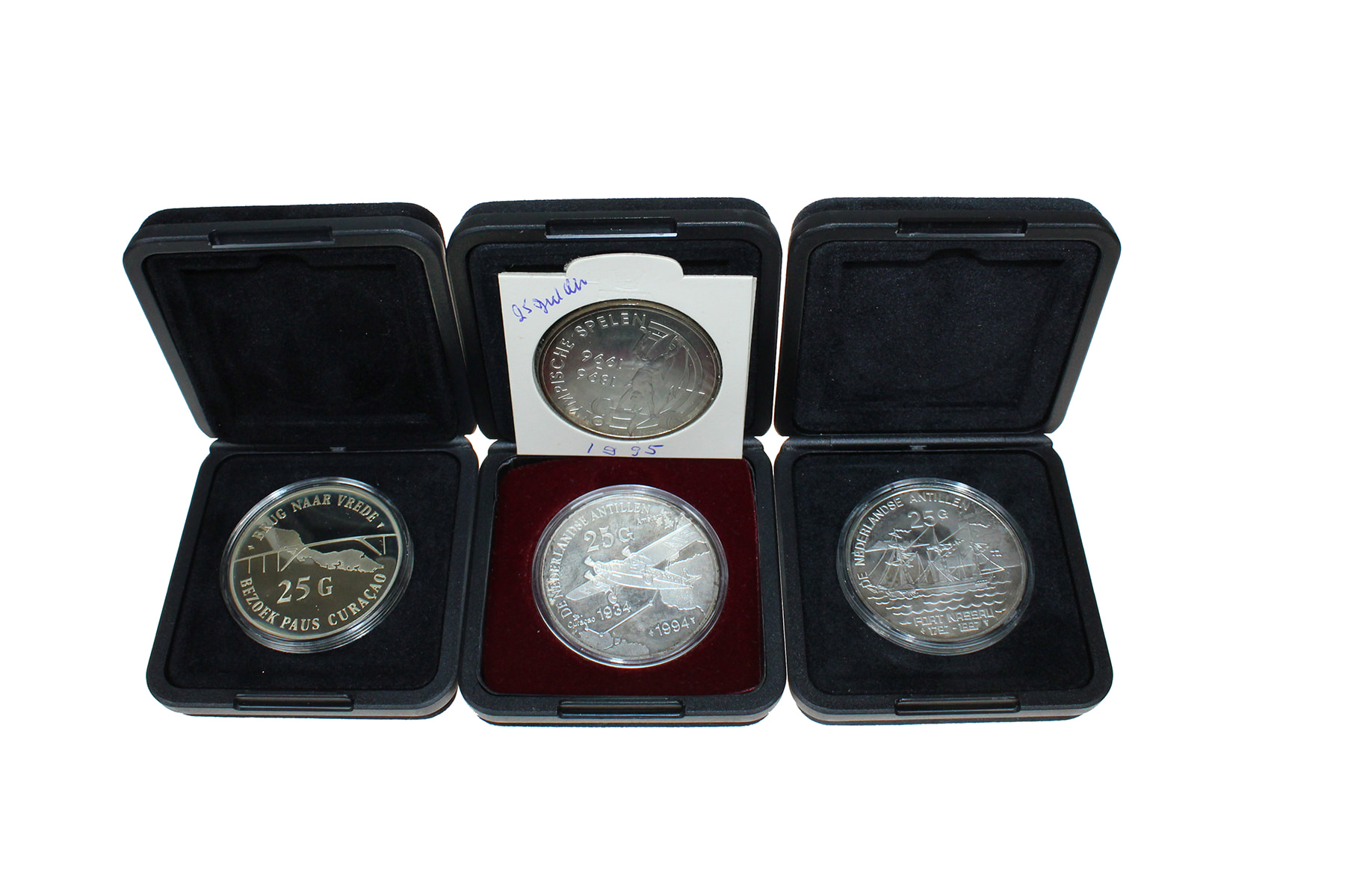 Lot (4) 25 Gulden 1990 - Pausbezoek; 1994 - De Snip; 1995 - Olympische Spelen Atlanta; 1997 - Fort Nassau. Diverse kwaliteiten.