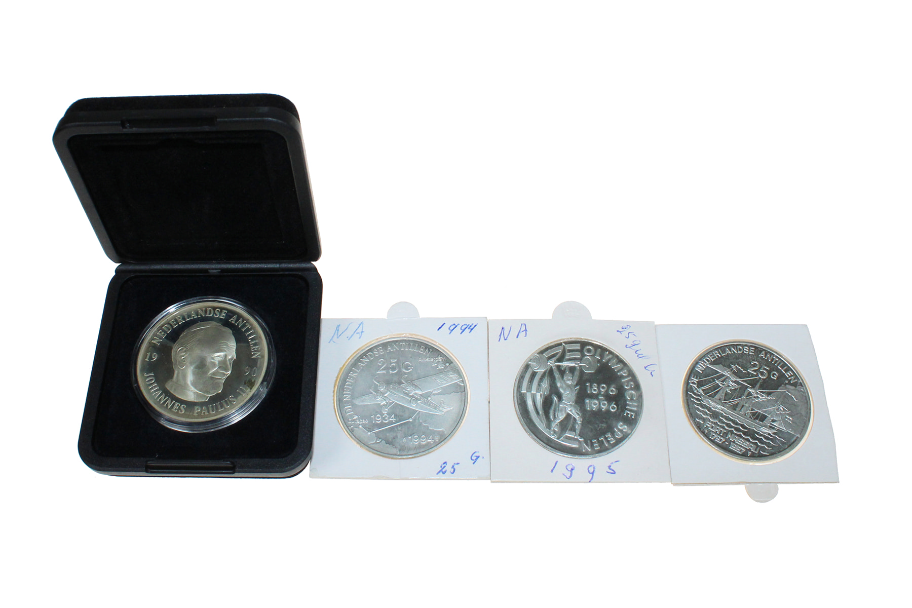 Lot (4) 25 Gulden 1990 - Pausbezoek; 1994 - De Snip; 1995 - Olympische Spelen Atlanta; 1997 - Fort Nassau.