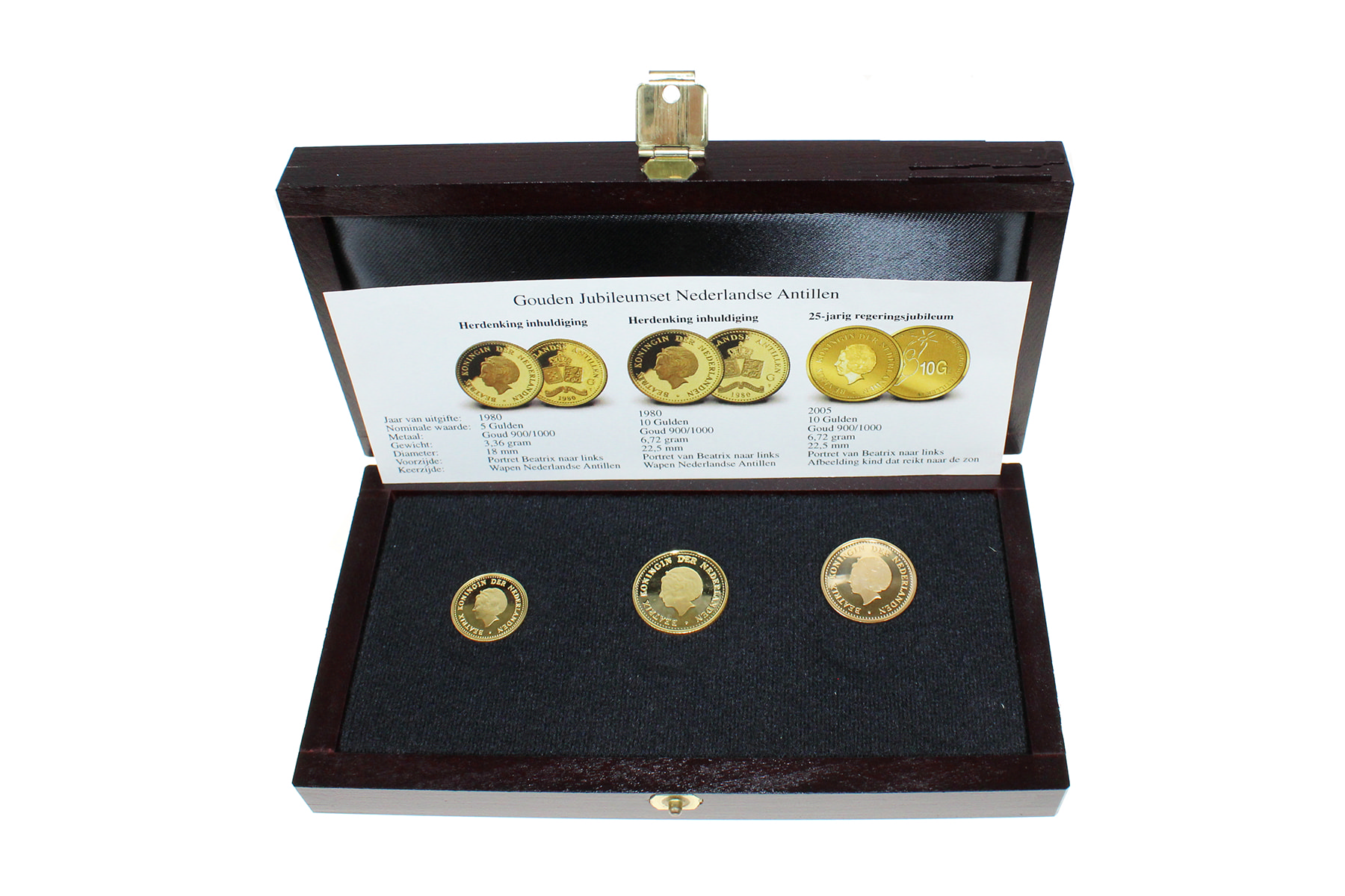 Gouden jubileumset 5 gulden 1980; 10 gulden 1980 en 2005. In cassette.