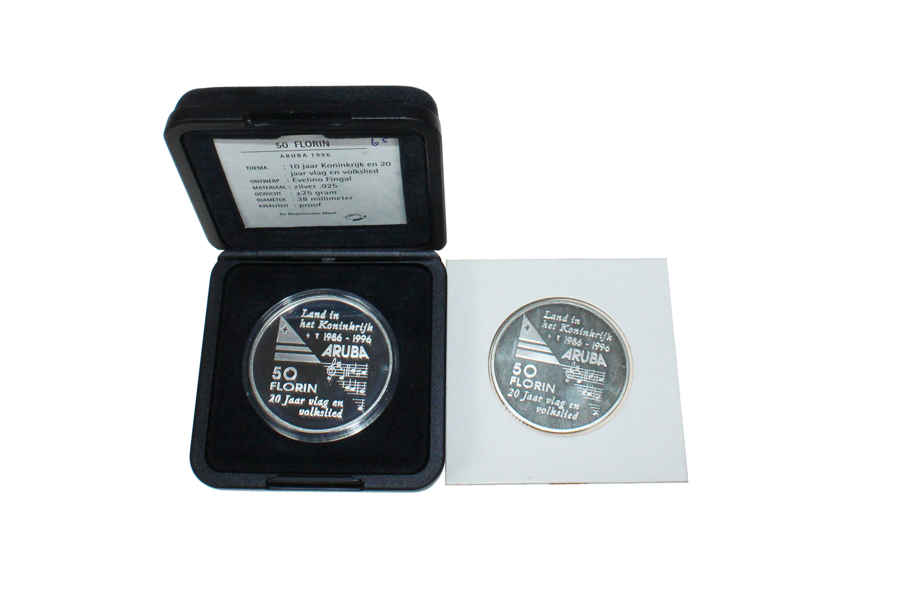 Lot (2) 50 Florin 1996 - Vlag en volkslied. Proof in originele verpakking + UNC.