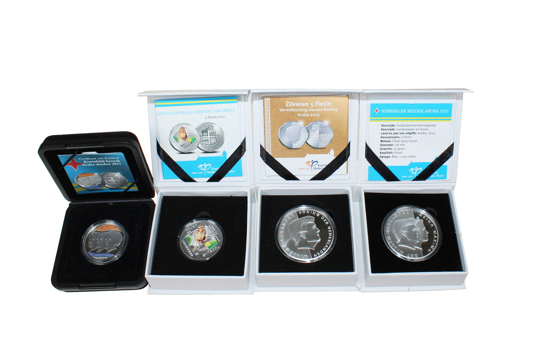 Lot (4) 5 Florin 2011 - Koninklijk Bezoek; 2012 - Shoco; 2013 - Verwelkoming nieuwe koning; 2013 - Koninklijk bezoek. Proof in originele verpakking.