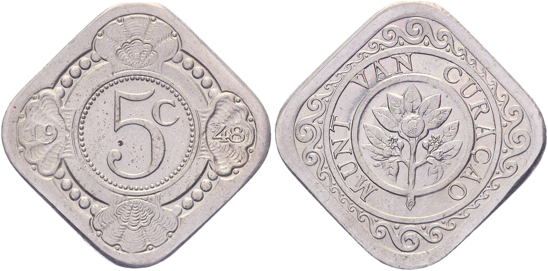 5 Cent 1948 met gepolijste stempels geslagen. Scholten 1404; CNO 64.4. Vrijwel FDC.