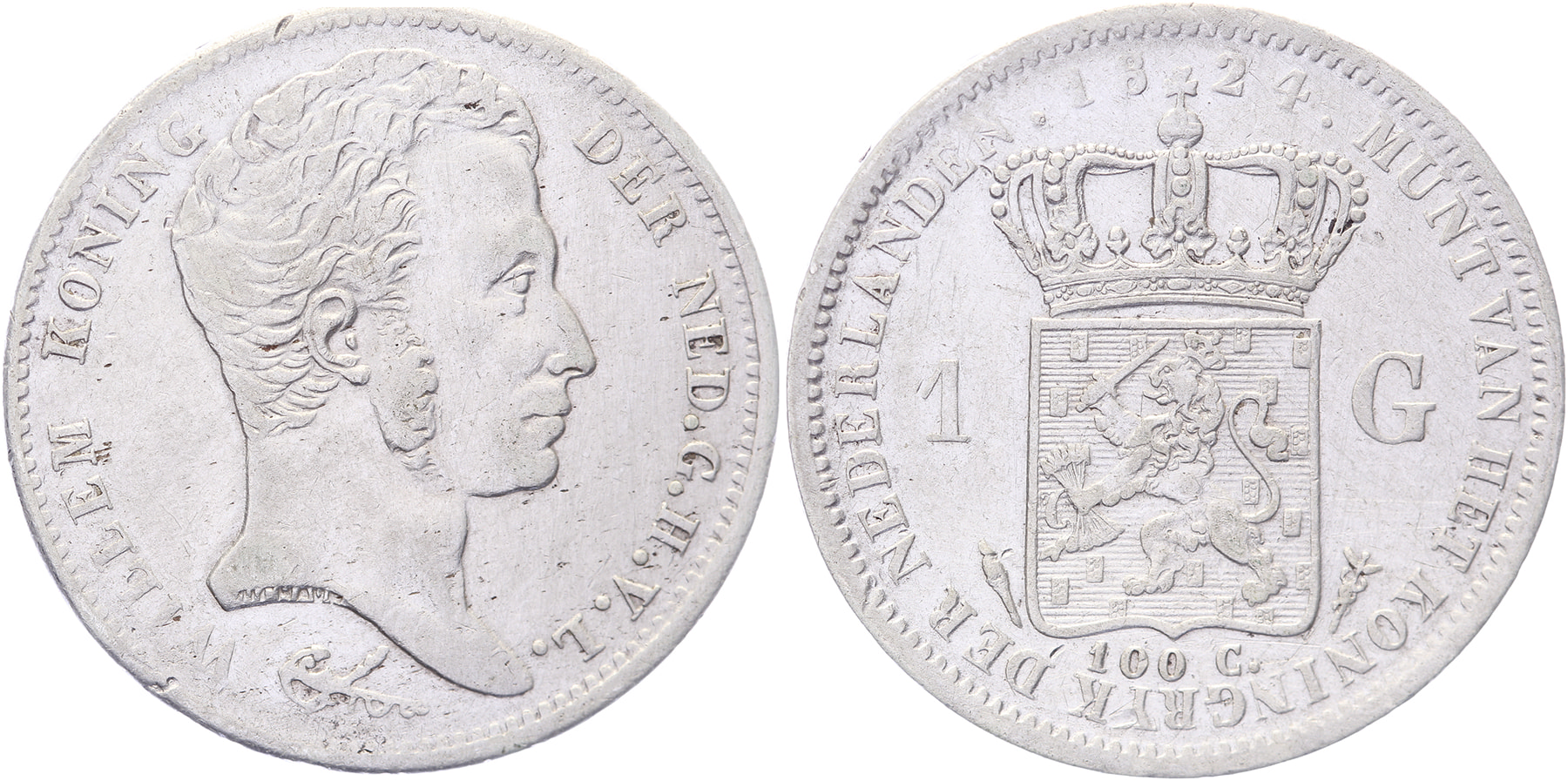 1 Gulden 1824 Utrecht, mmt. fakkel LSch. 272; Sch. 264 Zeer fraai