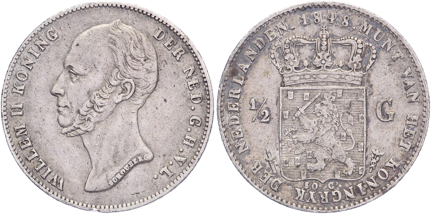 ½ Gulden 1848 mmt. zwaard LSch. 410; Sch. 531 Zeer fraai