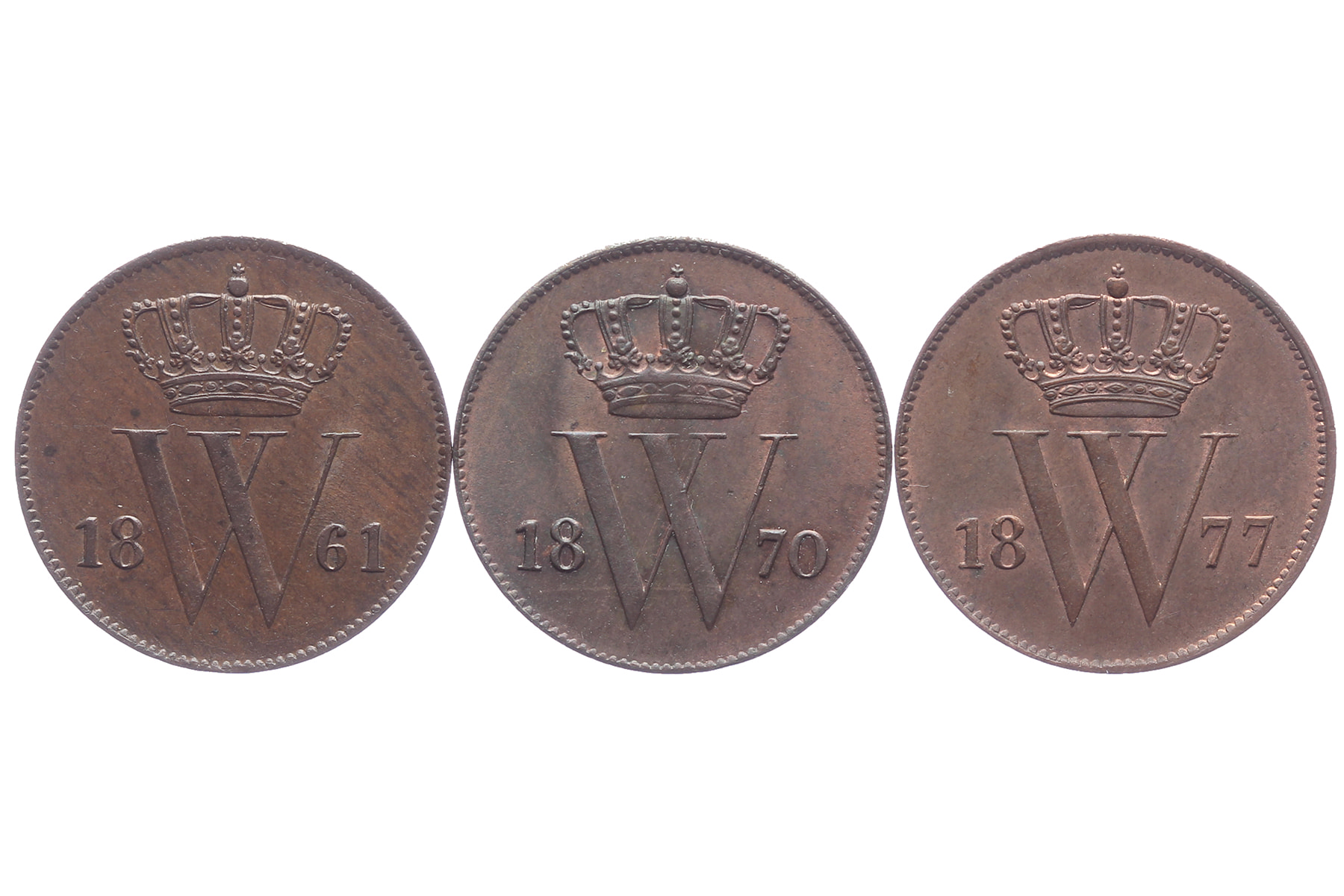 Lot (3) 1 Cent 1861, 1870, 1877 L.Sch. 685, 690-691; Sch. 686, 690-694 Prachtig en beter