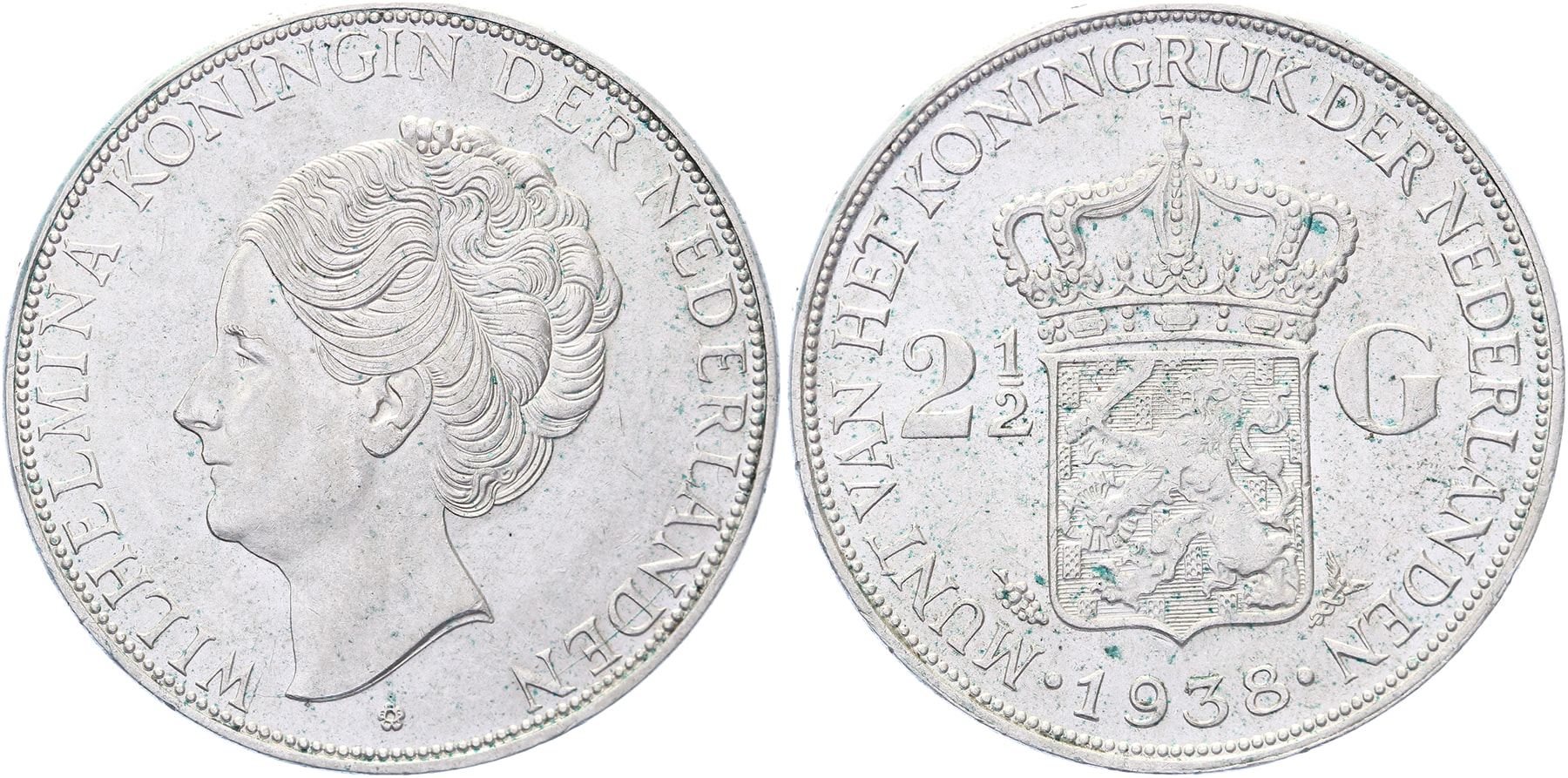 Rijksdaalder 1938 mmt. druiventros LSch. 675a; Sch. 790a. Grof haar Prachtig