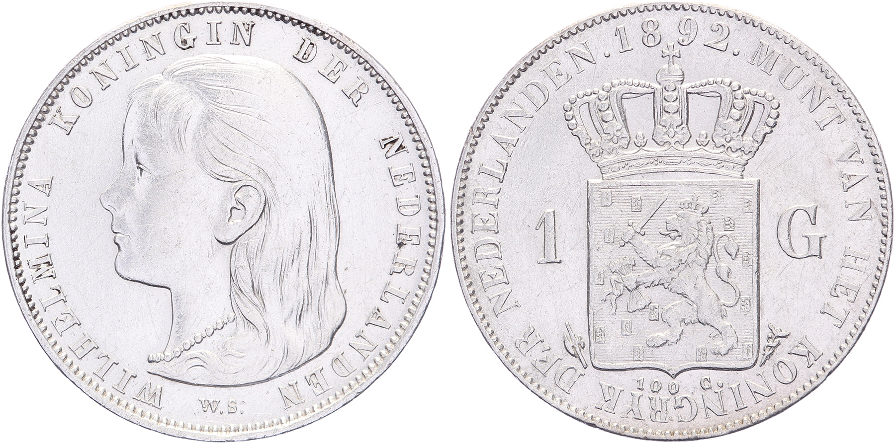 1 Gulden 1892 mmt. hellebaard LSch. 684; Sch. 795 Zeer fraai