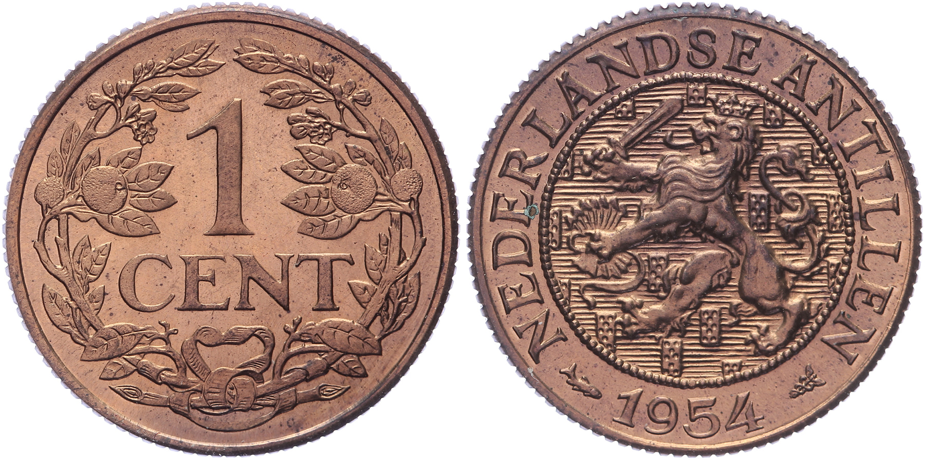 Lot (3) 1, 10 en 25 Cent 1954 mmt. vis. Sch. 1431, 1395, 1380. Met strip. Proof
