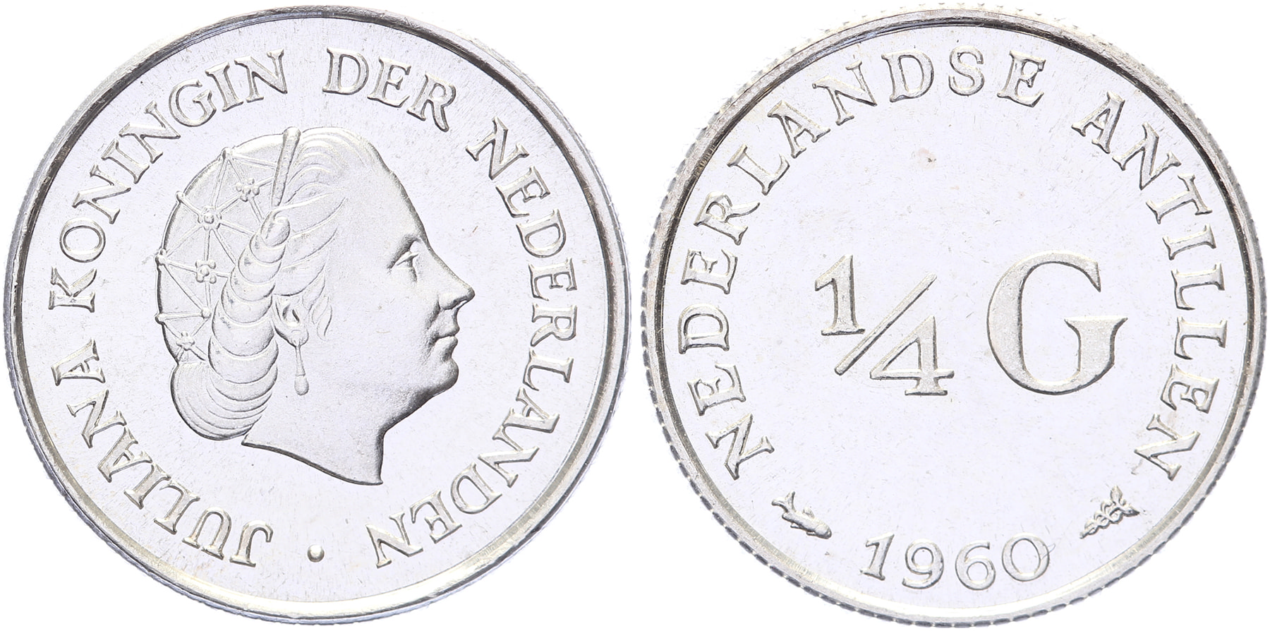 Lot (2) 10 en 25 Cent 1960 mmt. vis. Sch. 1399, 1383. Met strip. Proof.