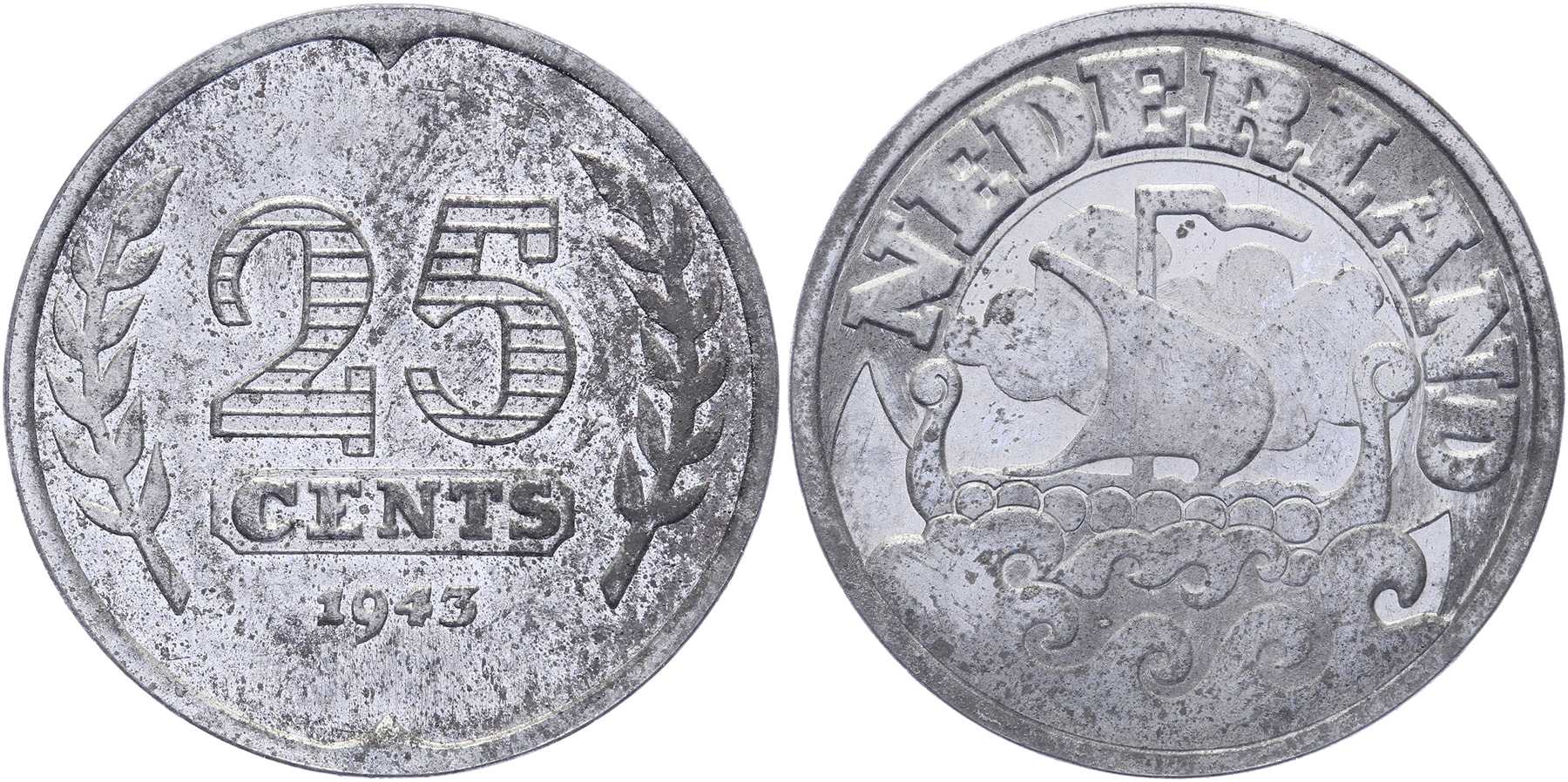 25 Cents 1943 zink LSch. 774; Sch. 1030 Proof