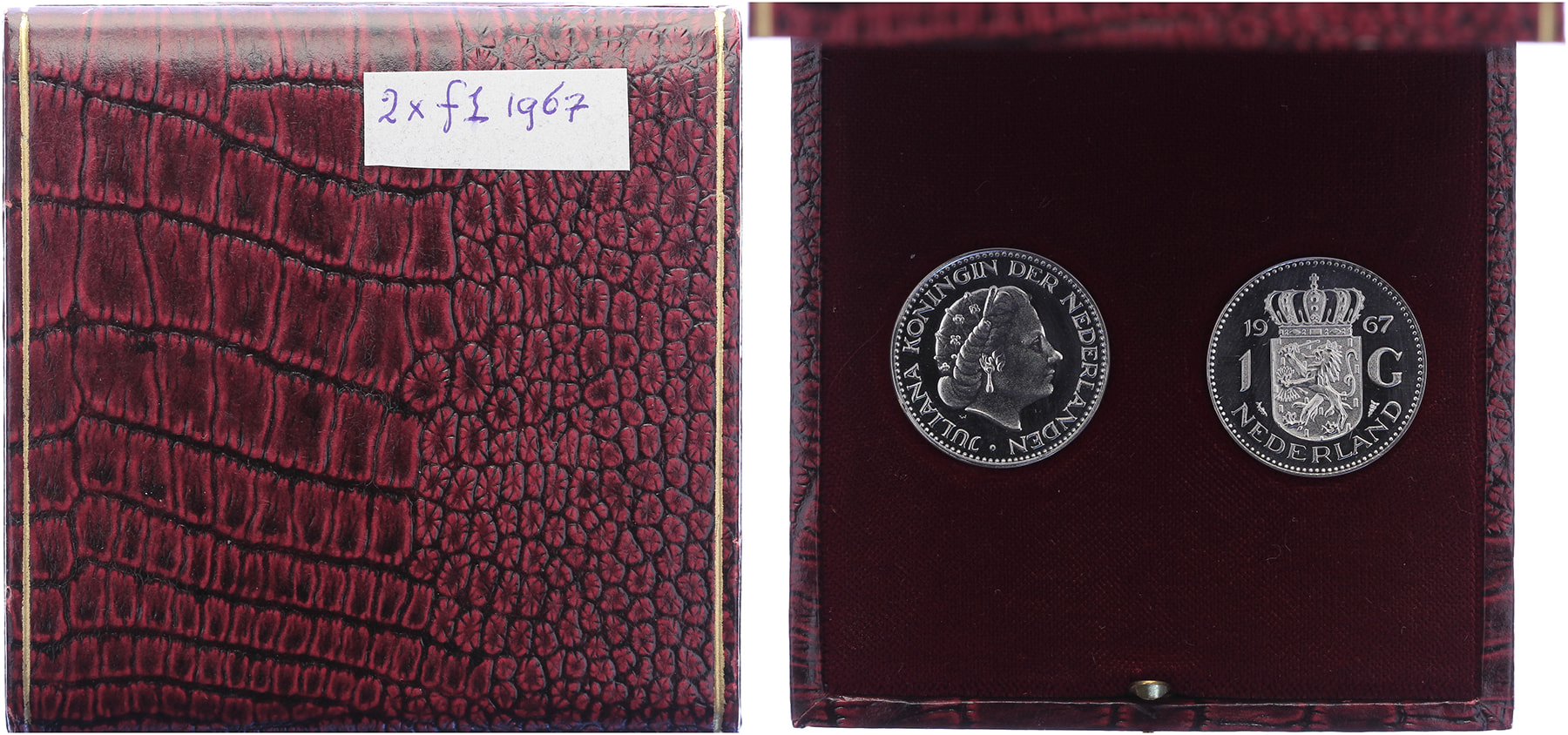 Lot (2) 1 Gulden 1967 mmt. vis (nikkel) LSch. 982; Sch. 1120Voor- en keerzijde in cassette van ’s Rijks Munt. Zeldzaam. Proof