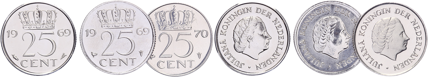 Lot (3) 25 Cents 1969 vis; 1969, 1970 haan LSch. 1013-1015; Sch. 1151-1153 Proof