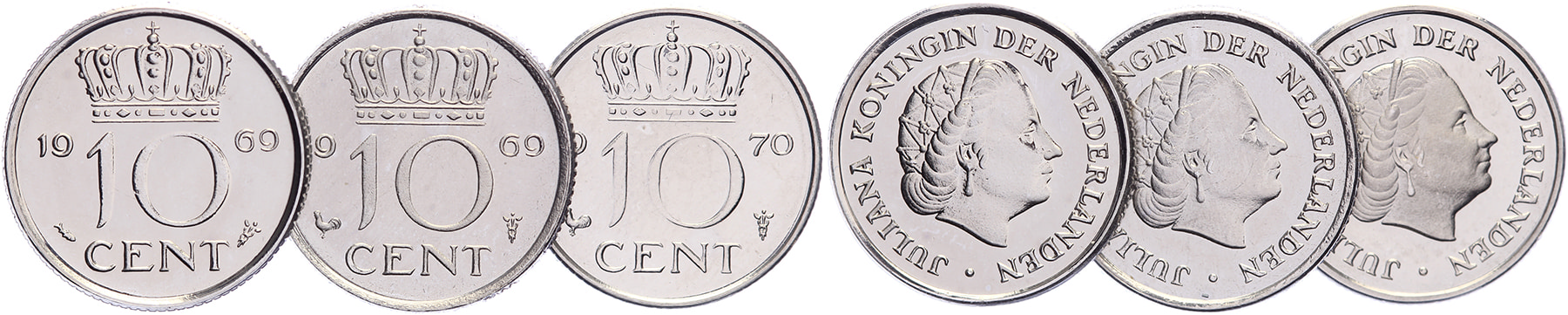 Lot (3) 10 Cents 1969 mmt. vis; 1969, 1970 mmt. Haan LSch. 1044-1046; Sch. 1182-1184 Proof