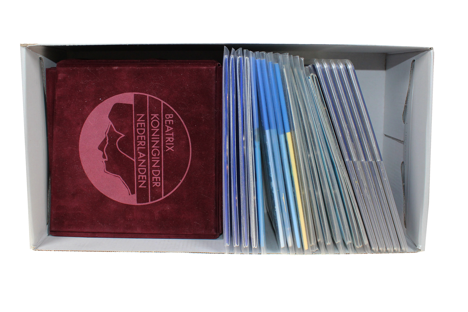 Doos met complete serie FDC-sets 1982-2002, als ook de proofsets 1996-2001. Compleet!
