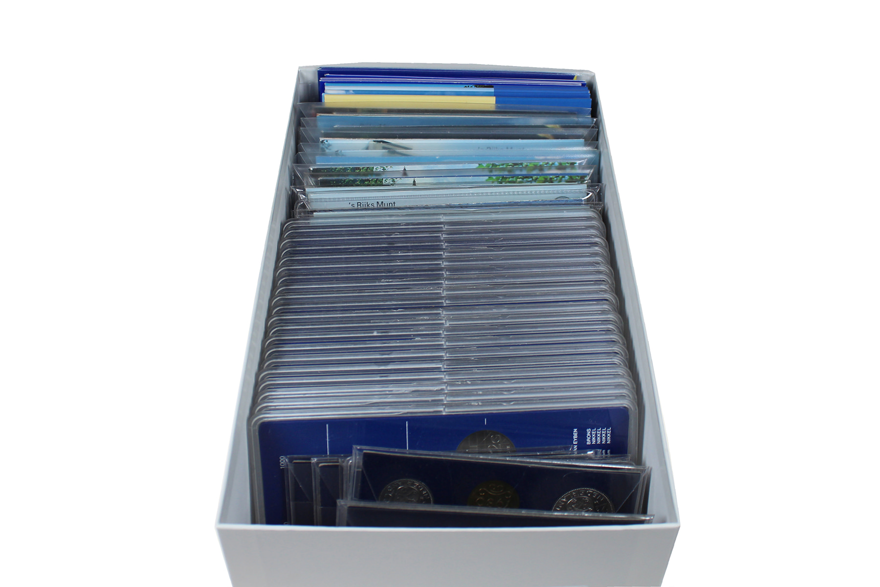 Doos met 50 stuks FDC-sets; 6 x 1980, 6 x 1982, 6 x 1983, 1984, 1985, 6 x 1986, 5 x 1987, 2 x 1988, 2 x 1989, 2 x 1990, 2 x 1991, 2 x 1992, 1 x 1993 t/m 2001.