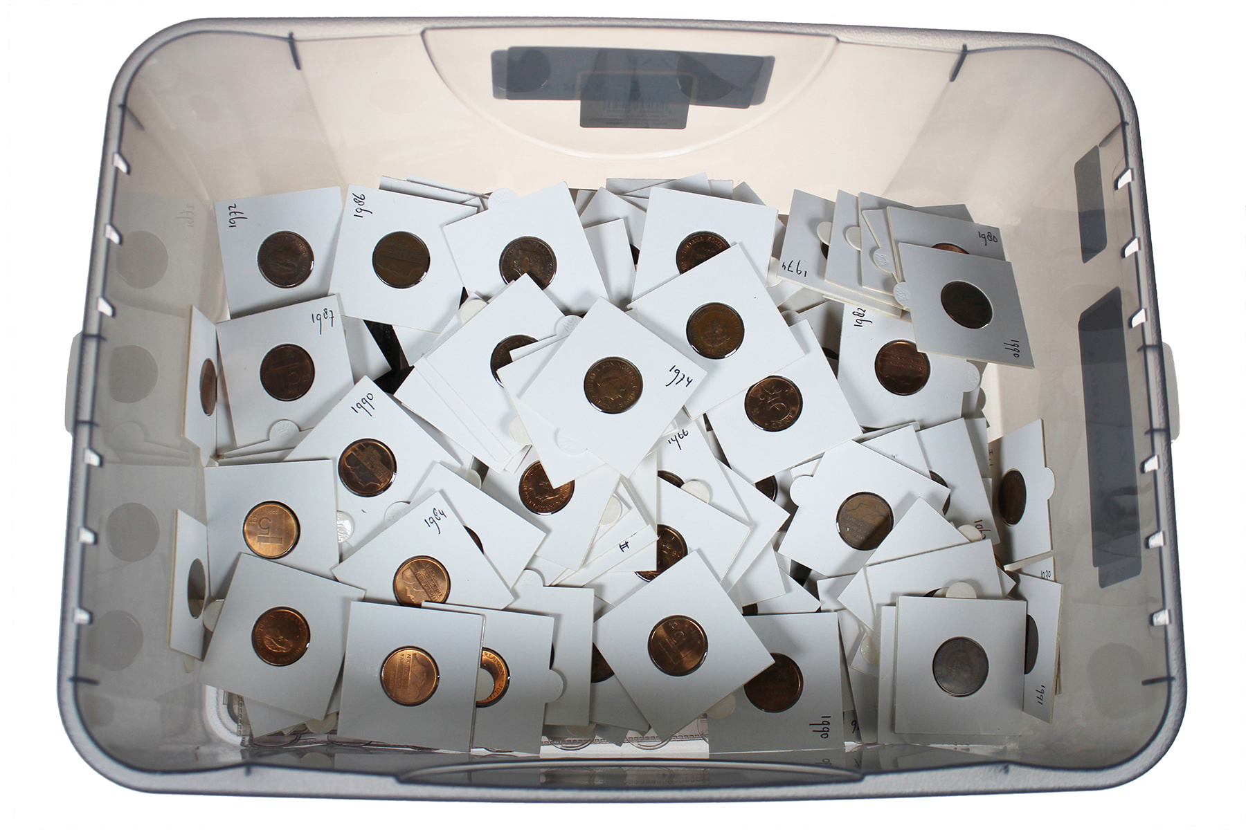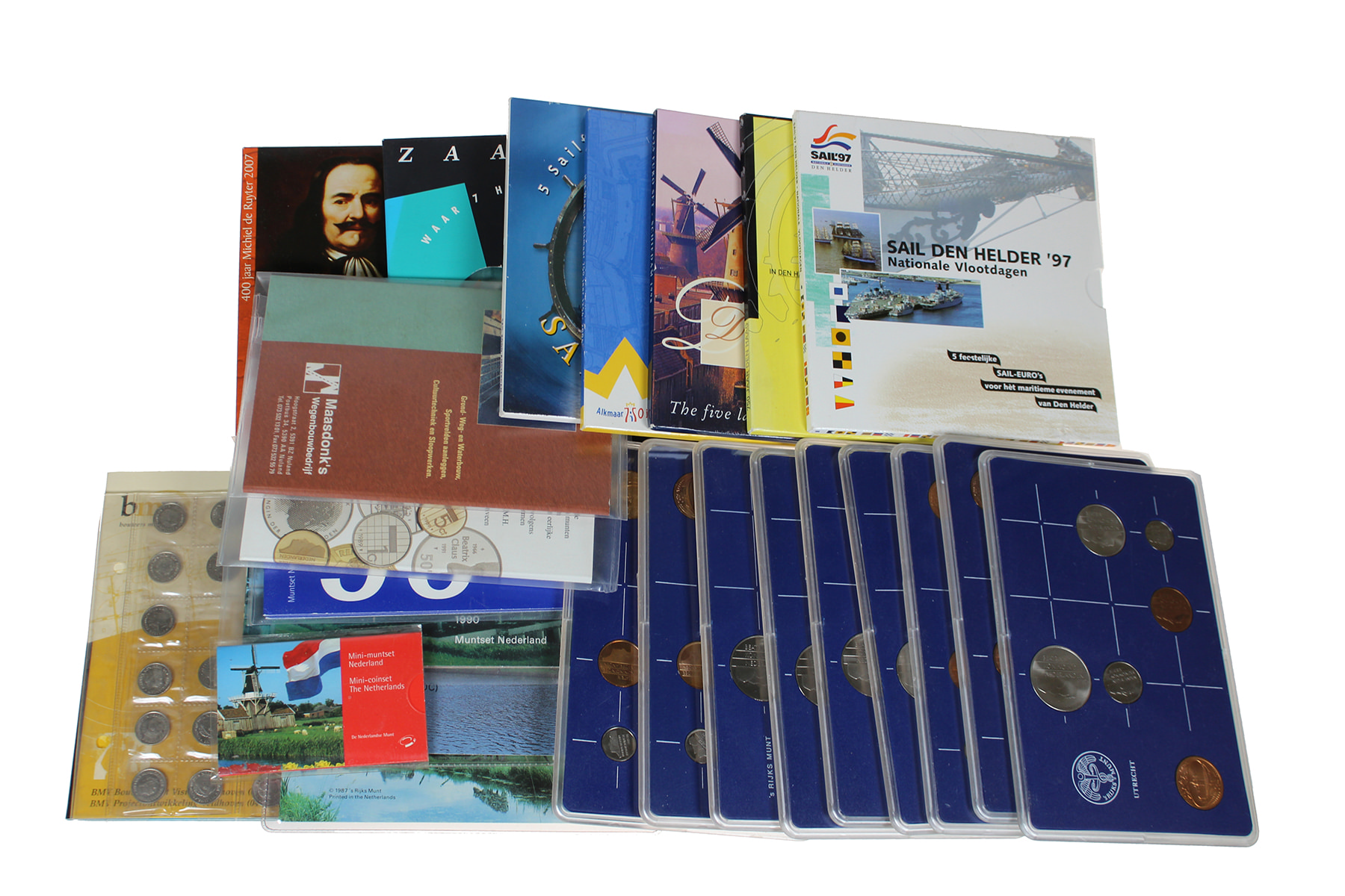 Kunststof box met veel oud nominaal, aangevuld met FDC- en themasetjes Nederland.