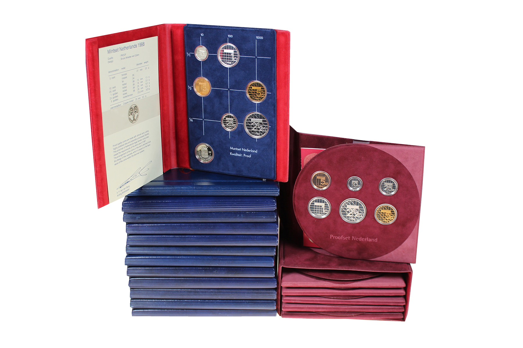 Doos met 18 stuks proofsets Nederland 1983-1996.