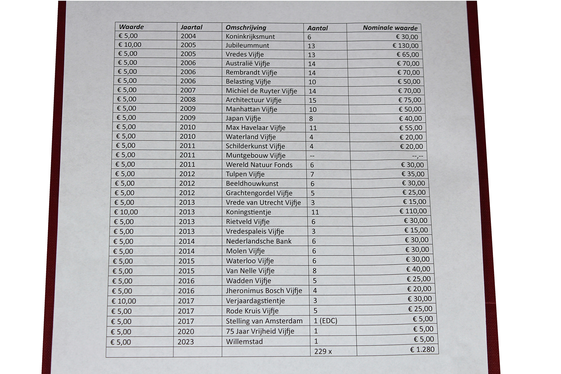Schoenendoos handelsvoorraad coincards (229 stuks) €5 & €10 tussen 2004 – 2024. Ook de zilveren! Specificatie bij kavel. Nominaal €1280,00.