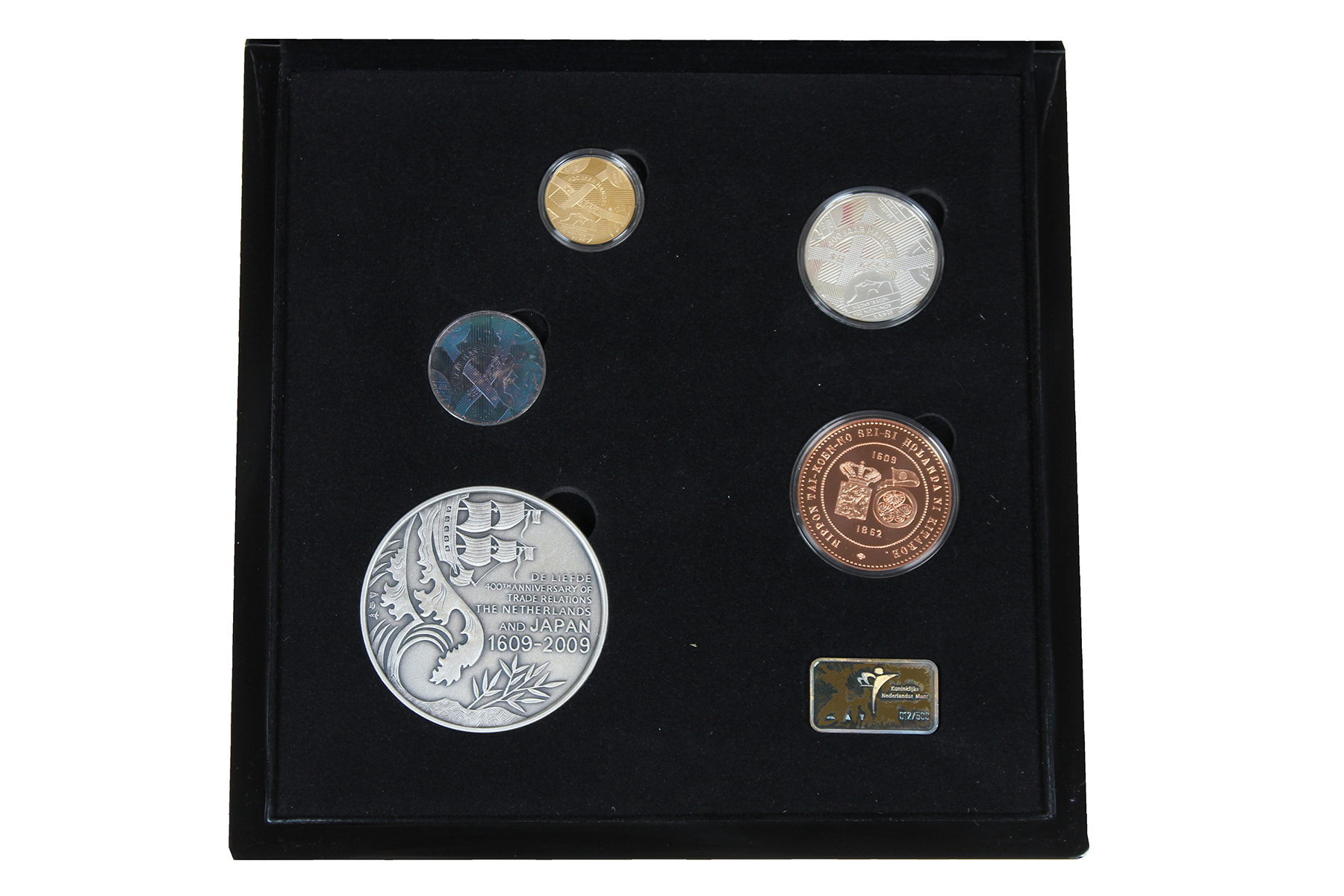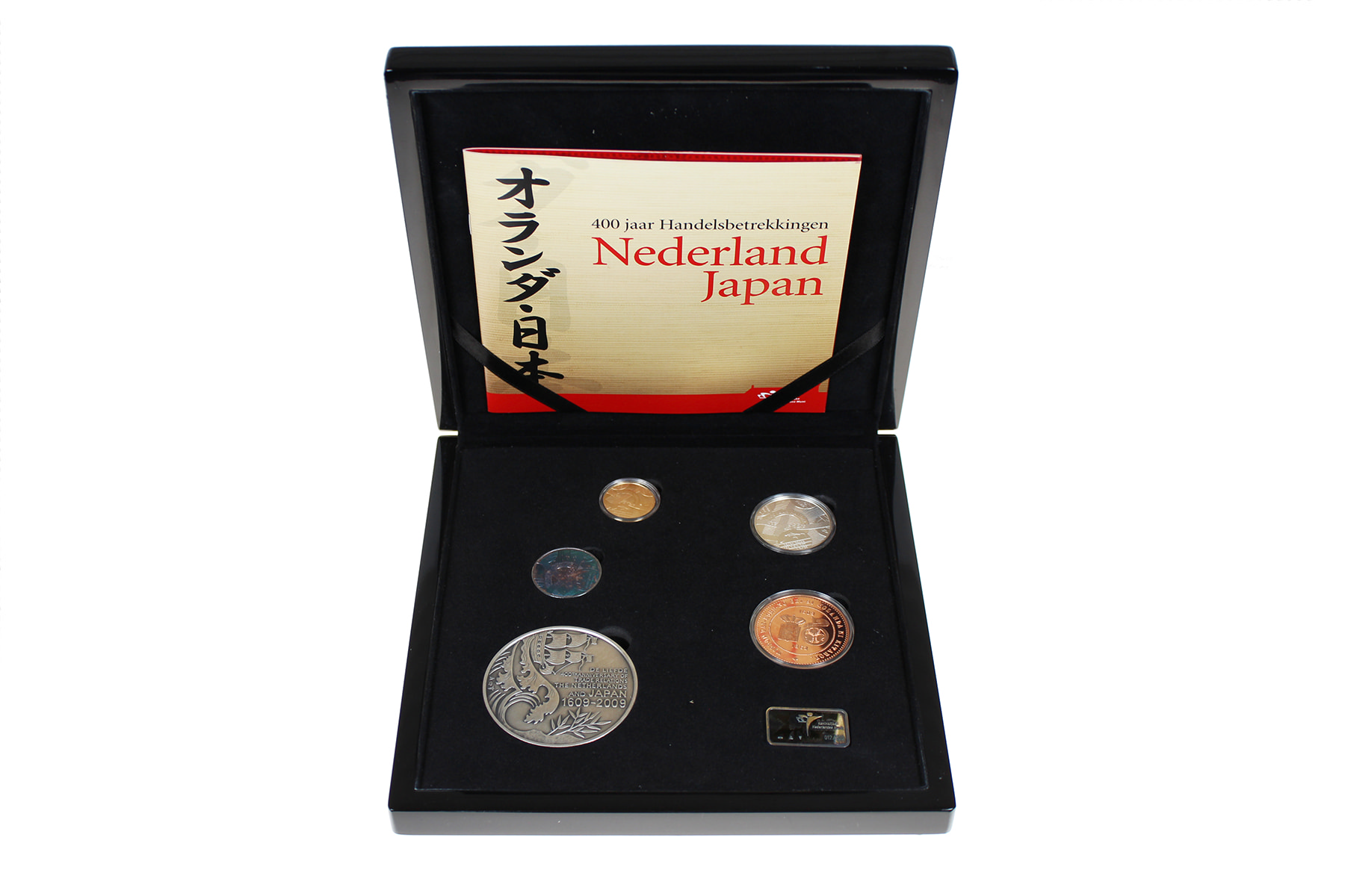 Prestigeset Nederland - Japan 400 jaar Handelsbetrekkingen. O.a. 10 euro goud. In luxe verpakking.