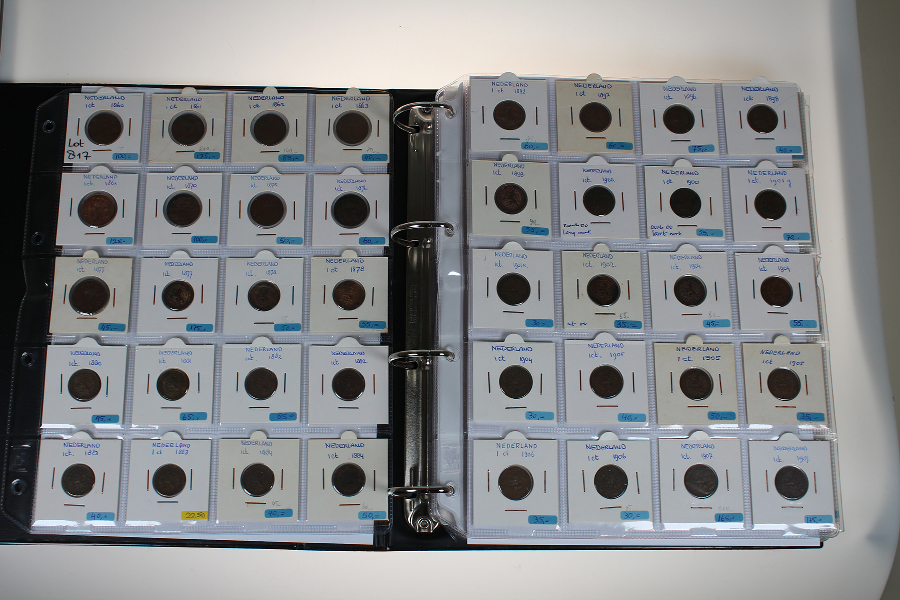 Blauw album met grote verzameling vrijwel uitsluitend centen uit de periode 1860-1931. Ook betere jaren. Ruim 300 stuks in opvallend mooie kwaliteit!!