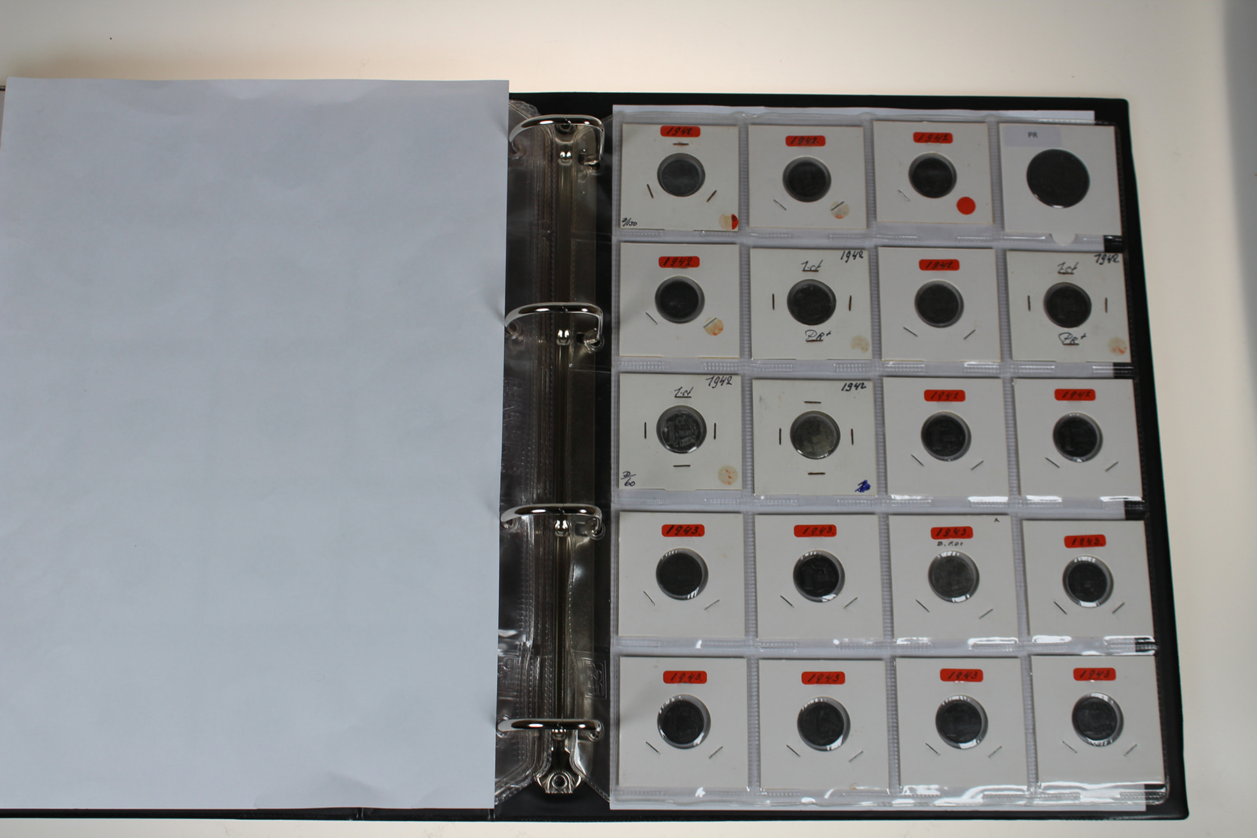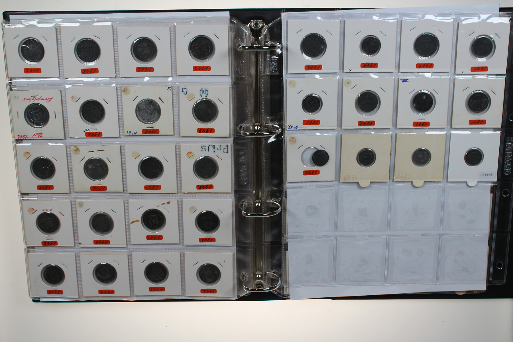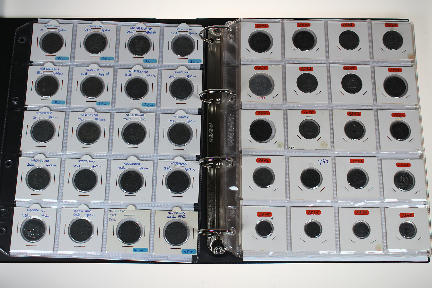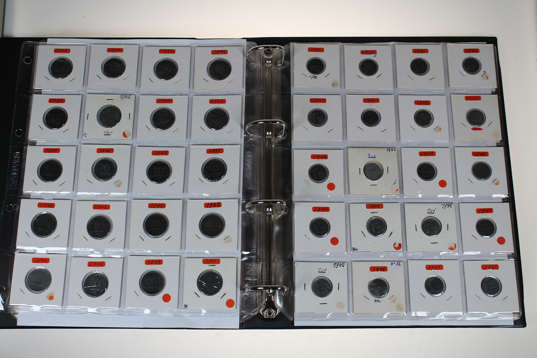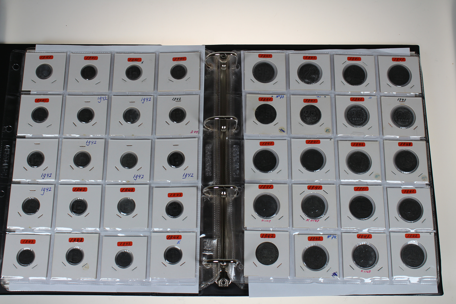 Zwart album met ca. 170 stuks zinken munten uit de periode 1940-1945 2e wereldoorlog. 1 - 2 ½ - 5 - 10 en 25 cent.
