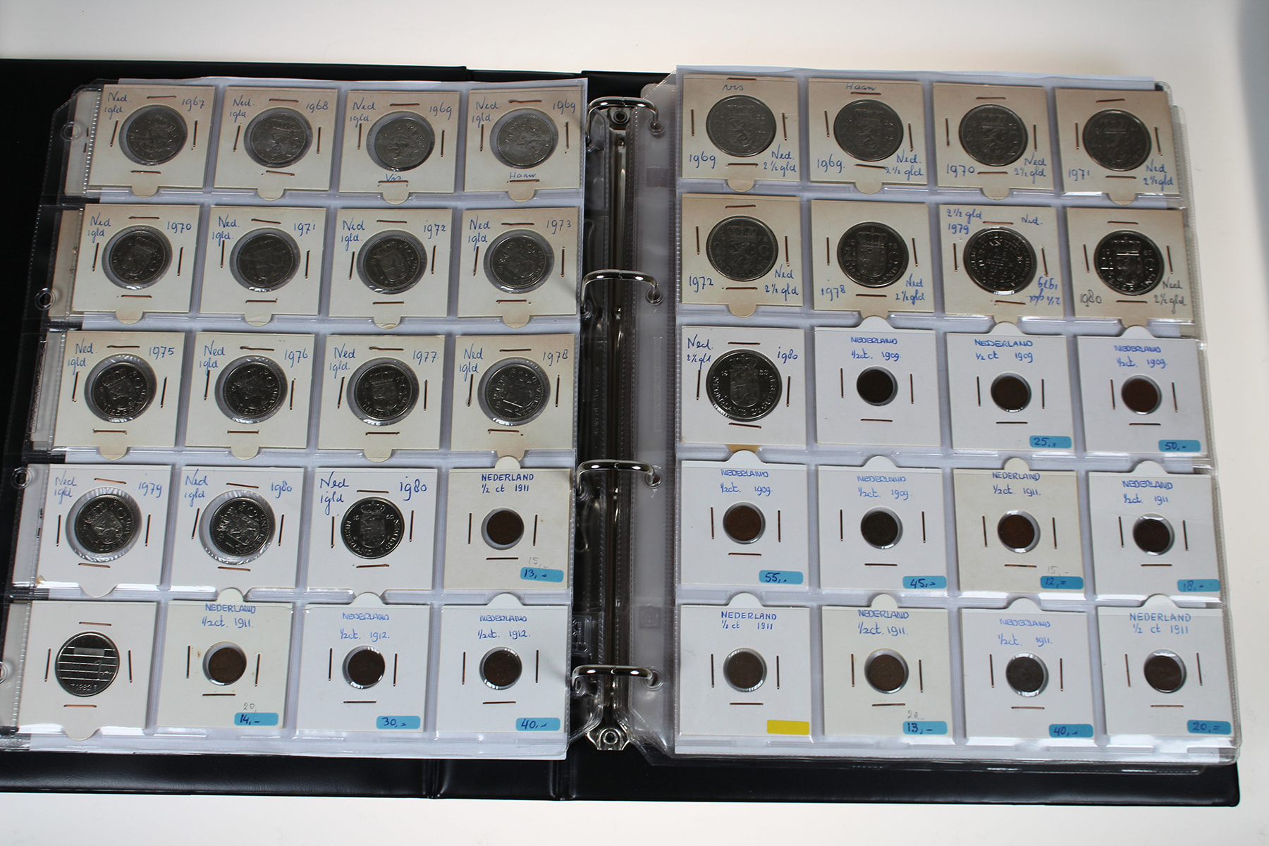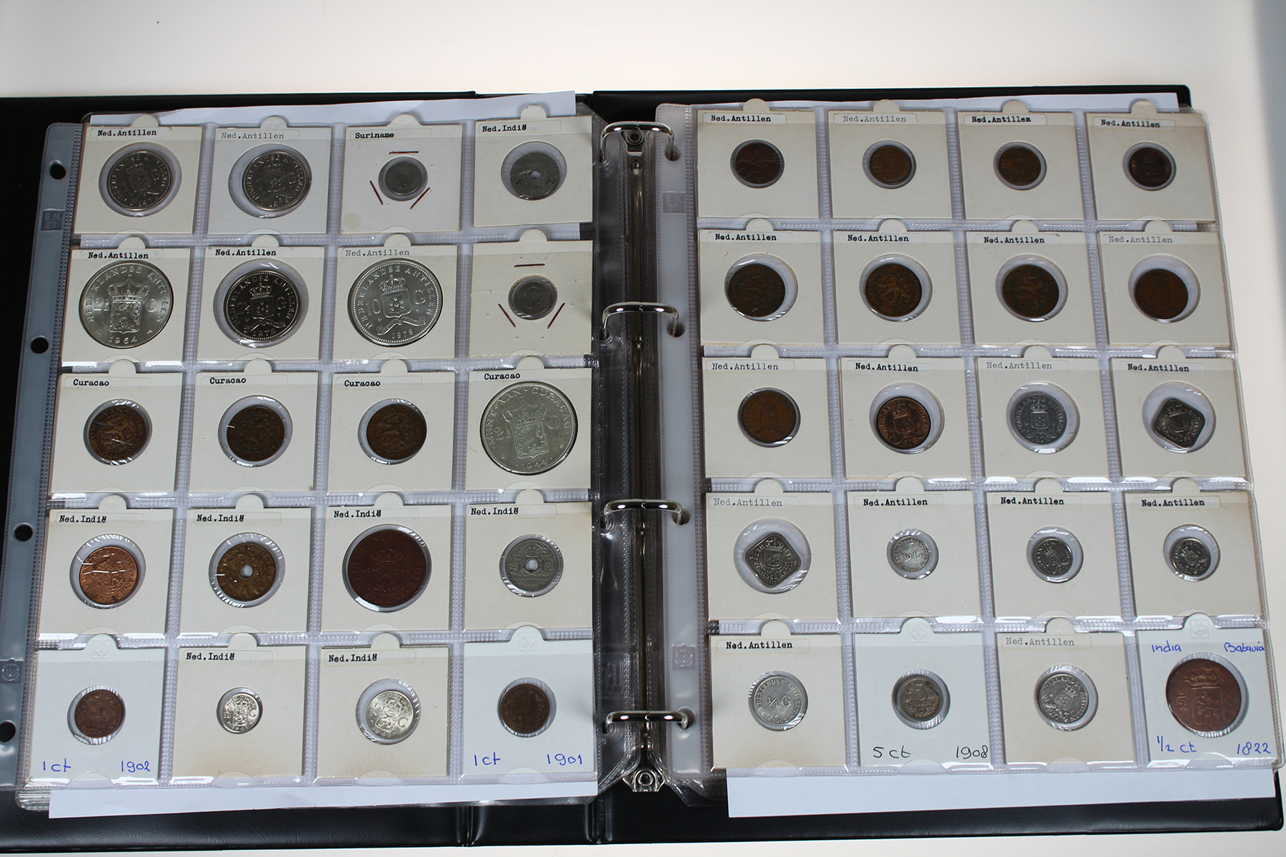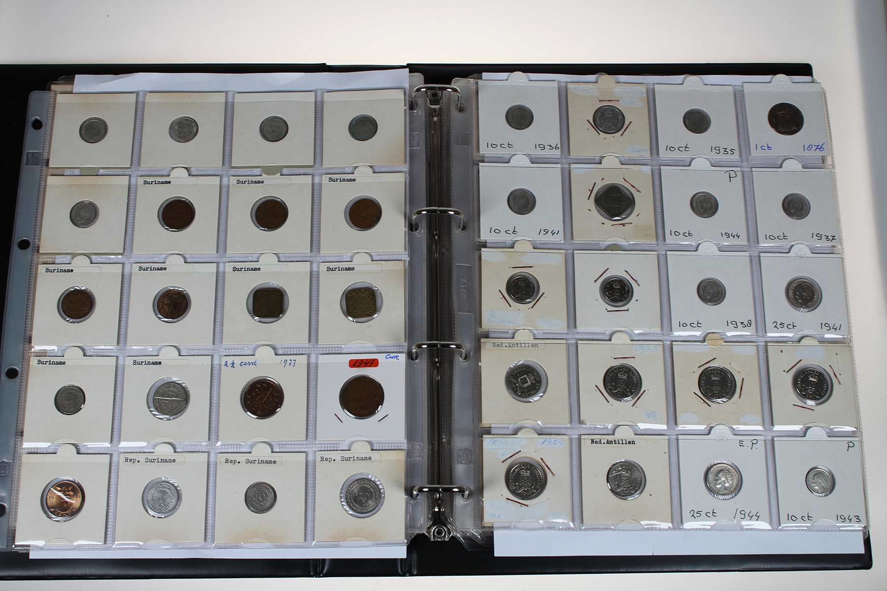 Rood album met restant collectie divers koninkrijk alsmede een kleine hoeveelheid overzee. Ca. 150 stuks.