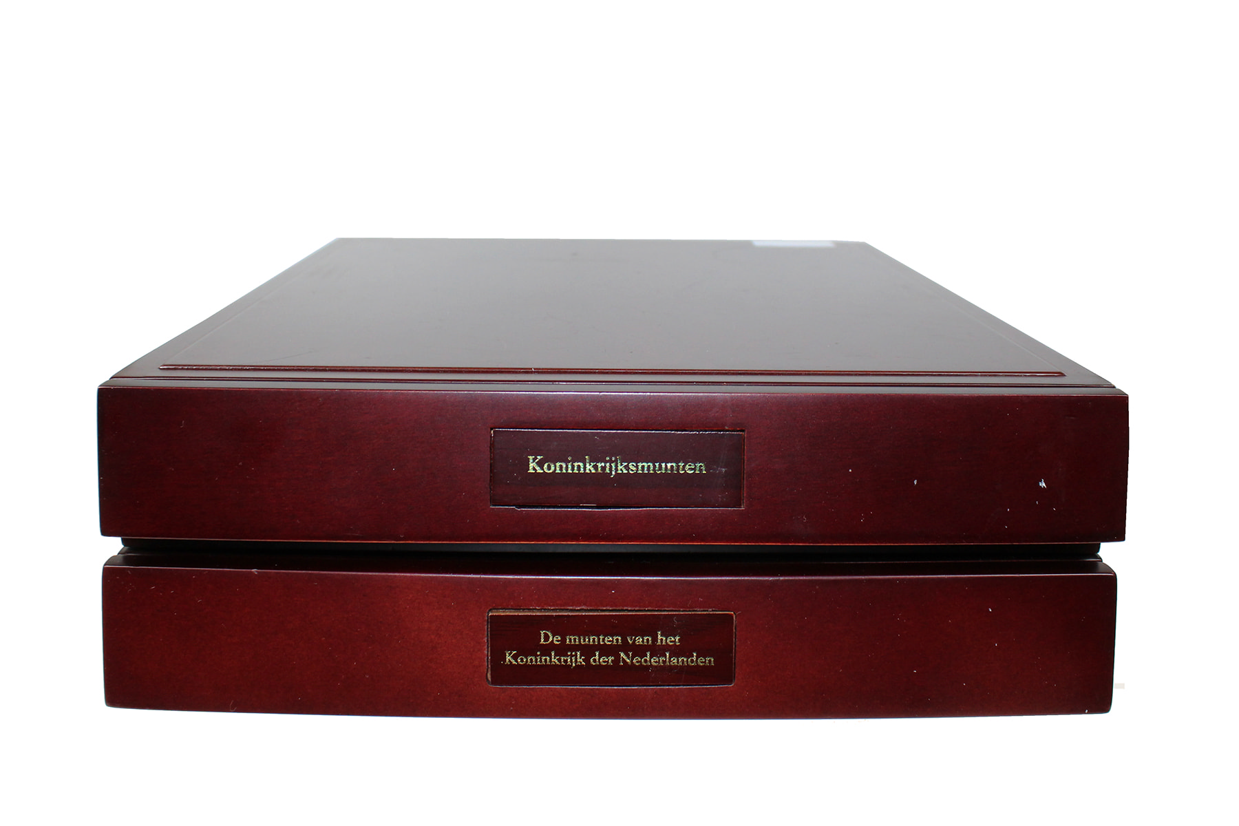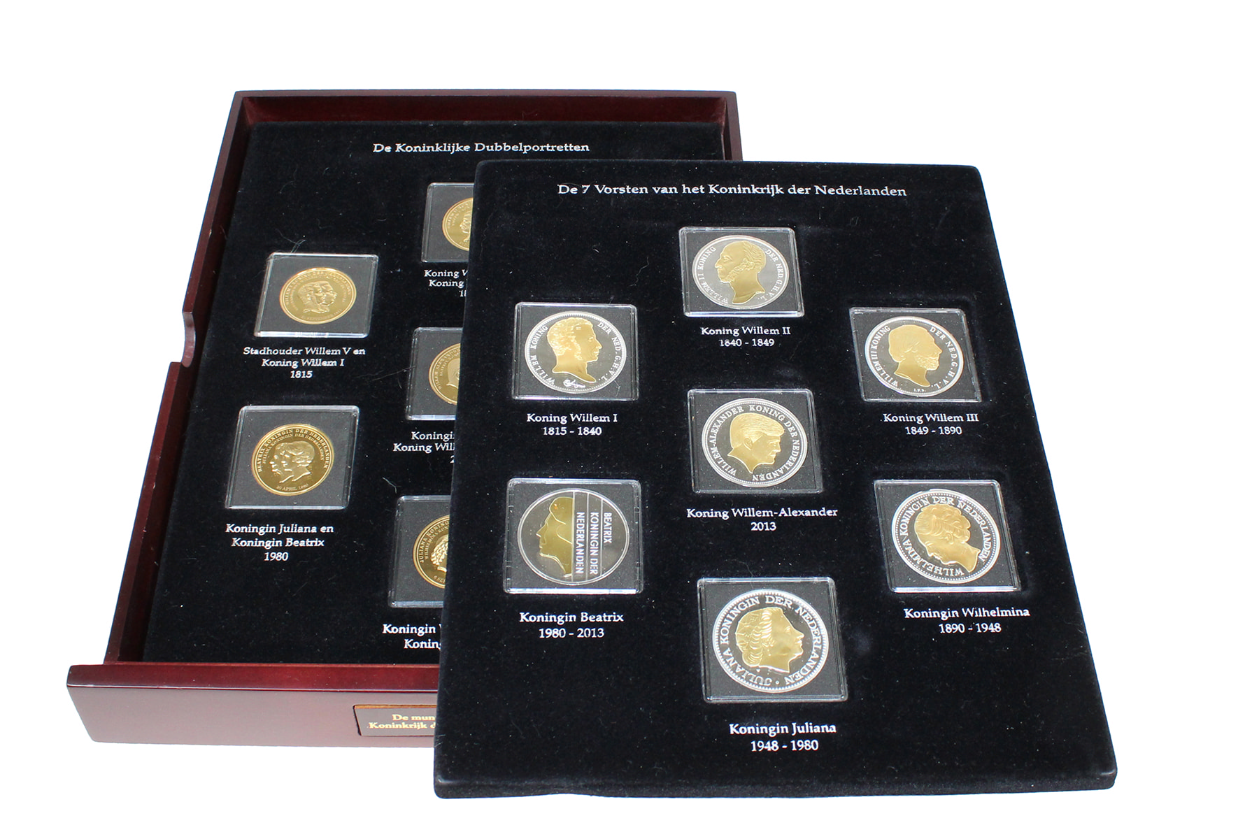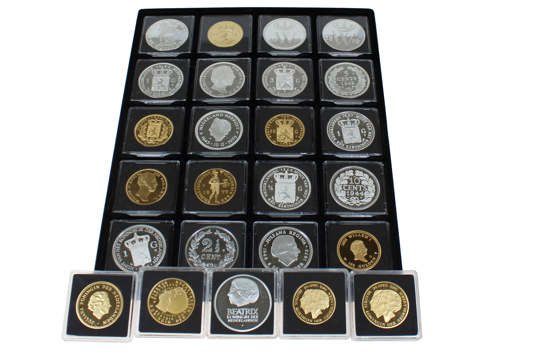 Twee kisten met ca. 40 stuks gepolijste replica’s van de mooiste koninkrijksmunten. Te mooi om echt te zijn!
