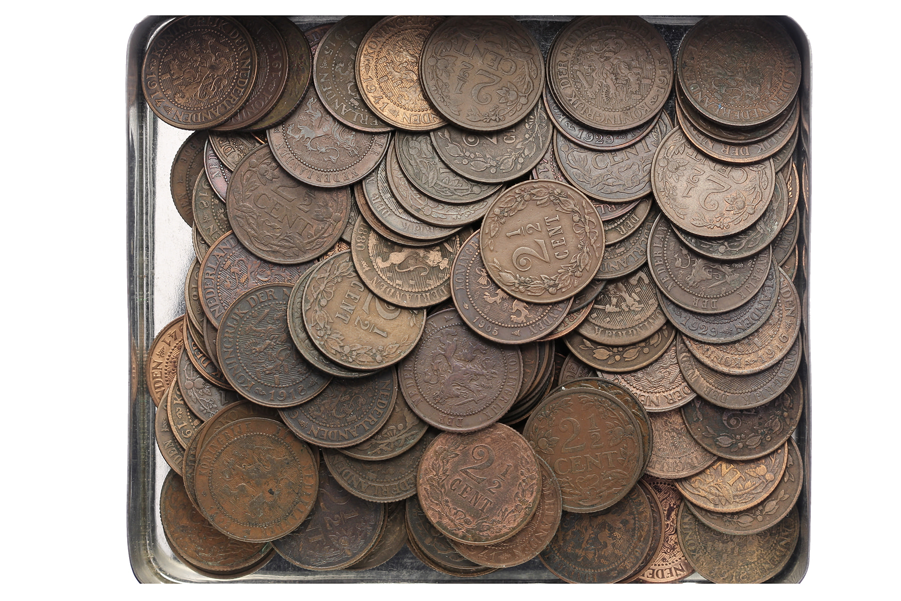 Blikje bronzen 2 ½ centen 1877-1941 (141), w.o. 2 x 1883; 2 x 1894 en 2 x 1898.