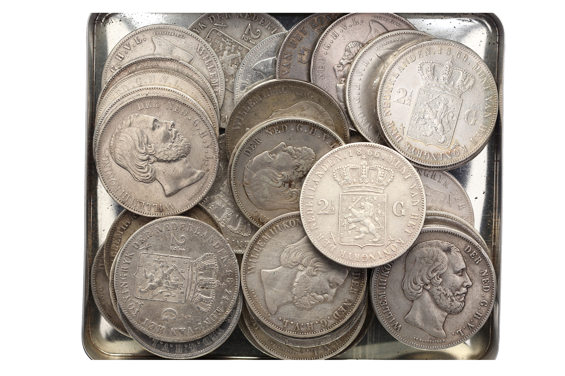 Blikje (41) rijksdaalders Willem III. Diverse kwaliteiten.