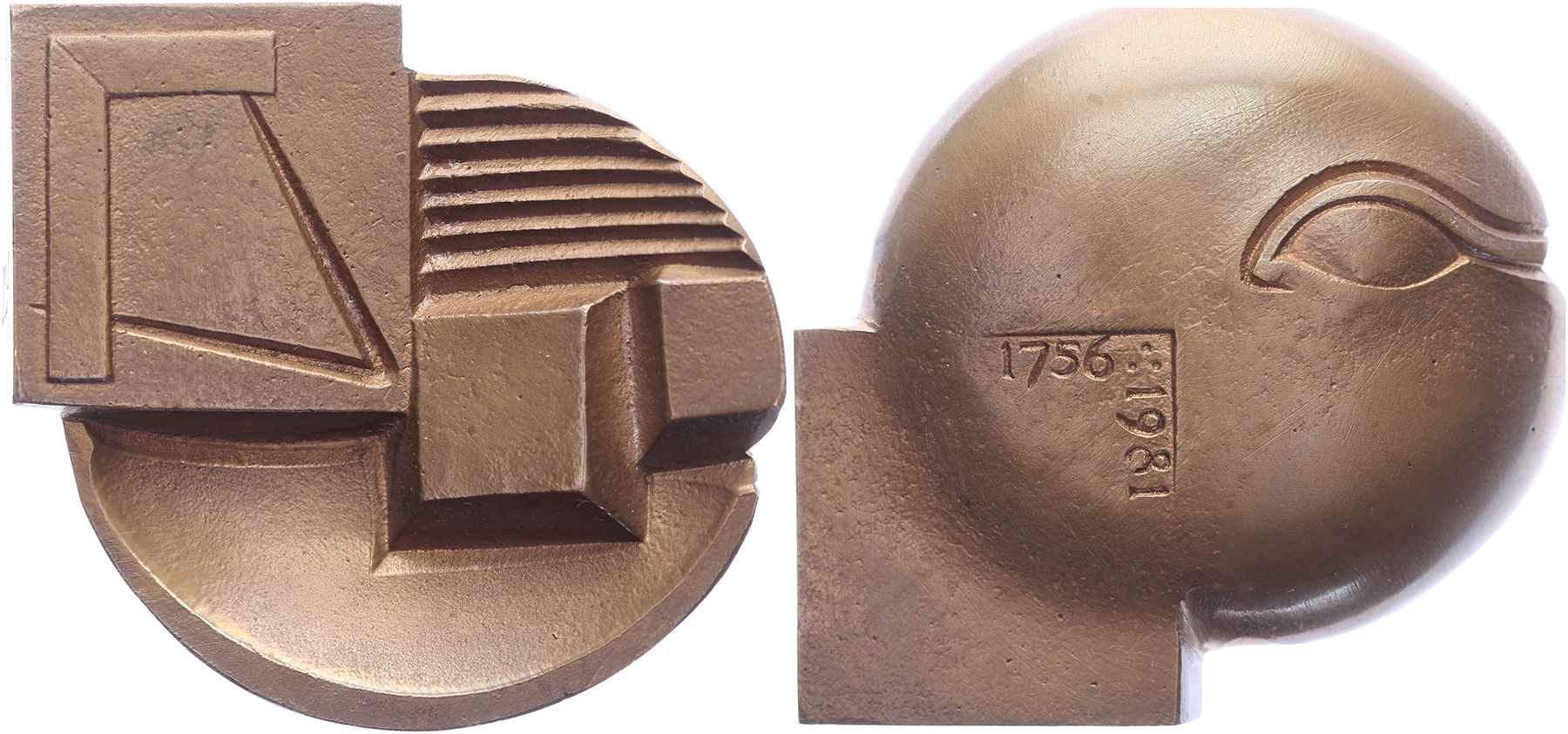 1981 225 jaar Loge Grootoosten der Nederlanden. Geometrische vormen. / Jubileumdata.Æ gegoten 63 x 58. (Francisca Weinberg). Schaars. Prachtig.
