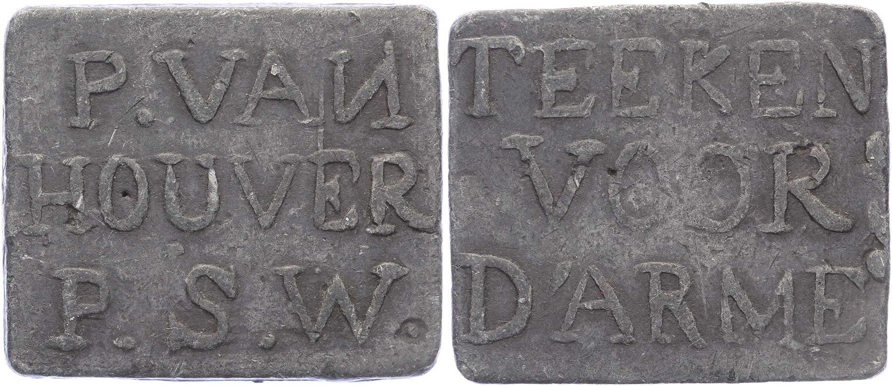 z.j. Armenpenning St. Walburga Kerk. Lood/tin 30 x 26. Minard 111. Zeer fraai.