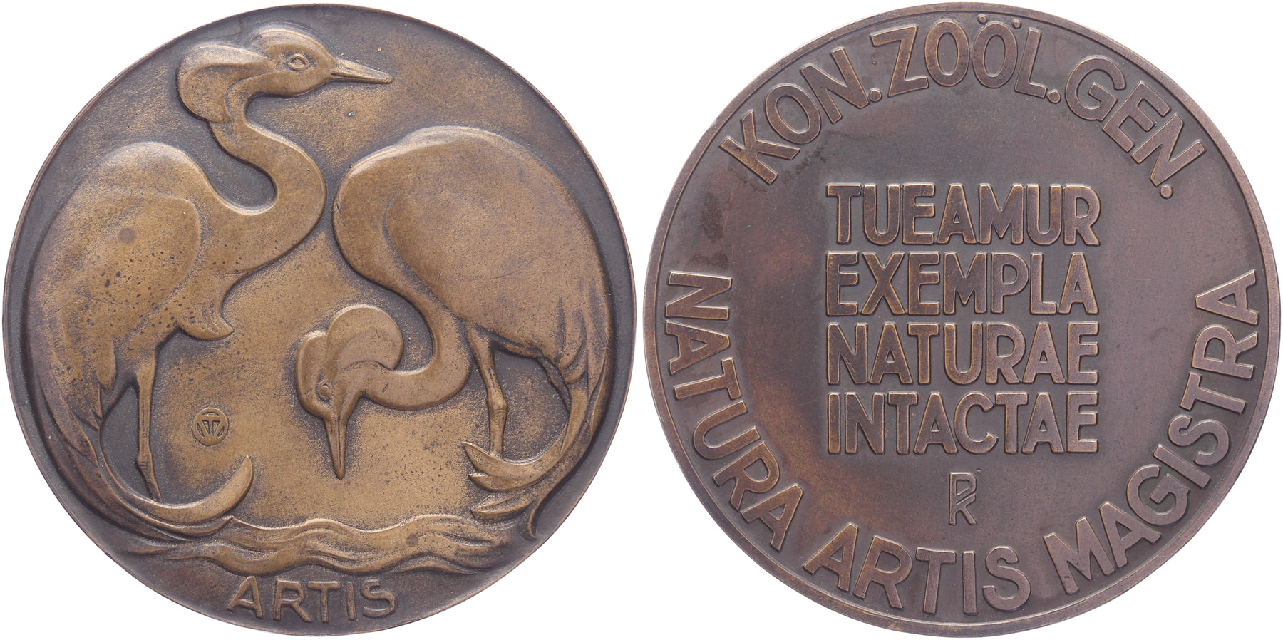 1930 Artis. Twee kraanvogels. / Op- en omschrift. Æ 60. Tilanus p. 75-77. Tjipke Visser. Prachtig.