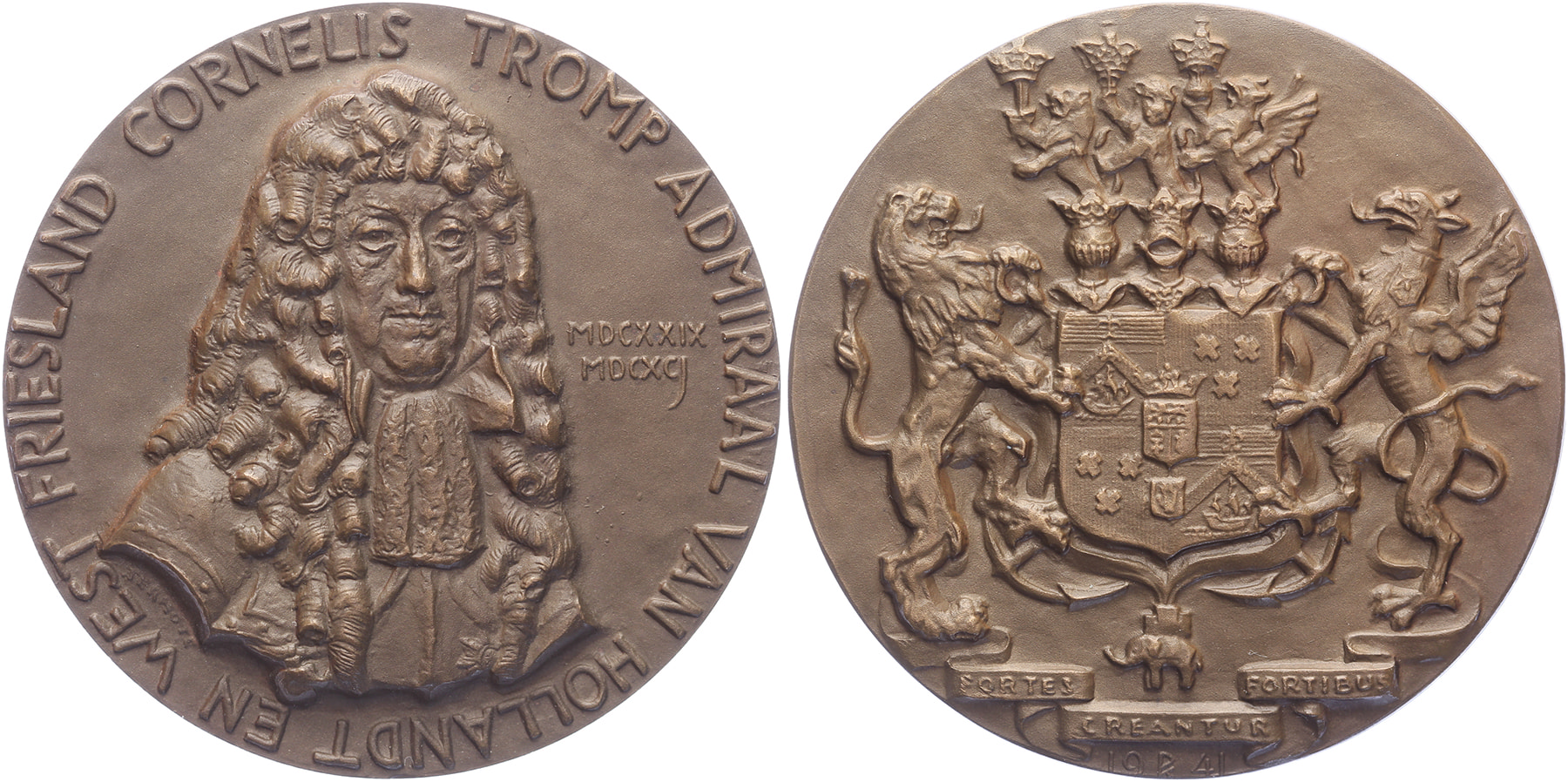 1941 Admiraal Cornelis Tromp. Buste en face. / Wapenschild. Æ 60. Tilanus p. 163-165. Albert Termote. Prachtig.