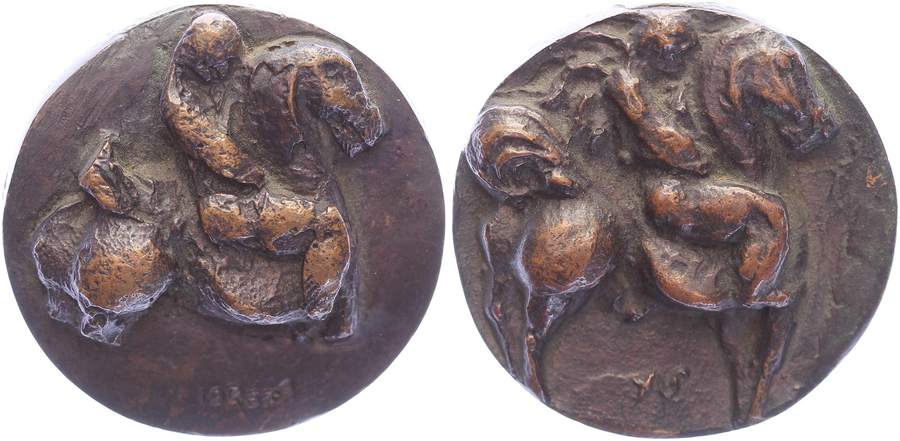 1967 Ruiter. Voor- en keerzijde afgewerkte en onafgewerkte man te paard.Æ gegoten 40. Tilanus p. 311-313. Arthur Spronken. Prachtig.