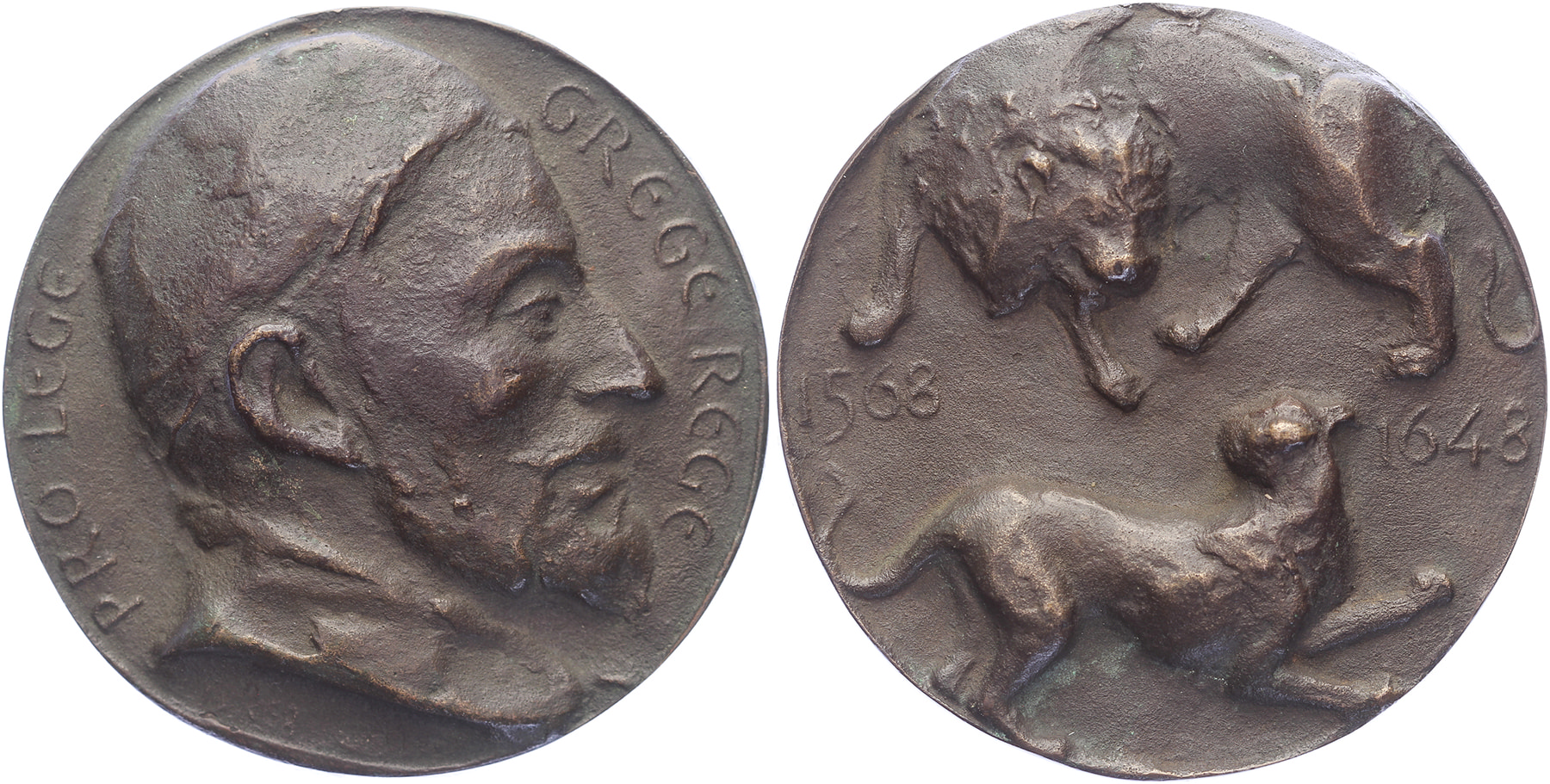 1968 Herdenking 80-jarige oorlog. Portret Willem van Oranje naar rechts. / Leeuw en panter.Æ gegoten 61. Tilanus p. 323-325. Henk Dannenburg. Prachtig.
